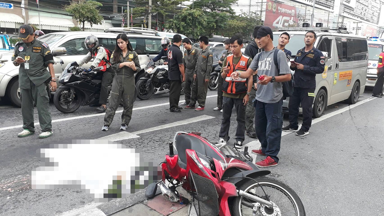 เมื่อเวลา 07.00 น. วันที่ 20 พ.ค. 60 ร.ต.อ.สุจิน พลประภาพรชัย รอง สว.(สอบสวน) สน.ห้วยขวาง รับแจ้งเหตุมีรถโดยสารประจำทางทับผู้ขับขี่รถจักรยานยนต์เสียชีวิต บริเวณสี่แยกพระราม 9 แขวงห้วยขวาง เขตห้วยขวาง กทม. จึงรายงานให้ผู้บังคับบัญชาทราบ ก่อนรุดไปตรวจสอบพร้อมแพทย์นิติเวช รพ.รามาฯ มูลนิธิร่วมกตัญญู