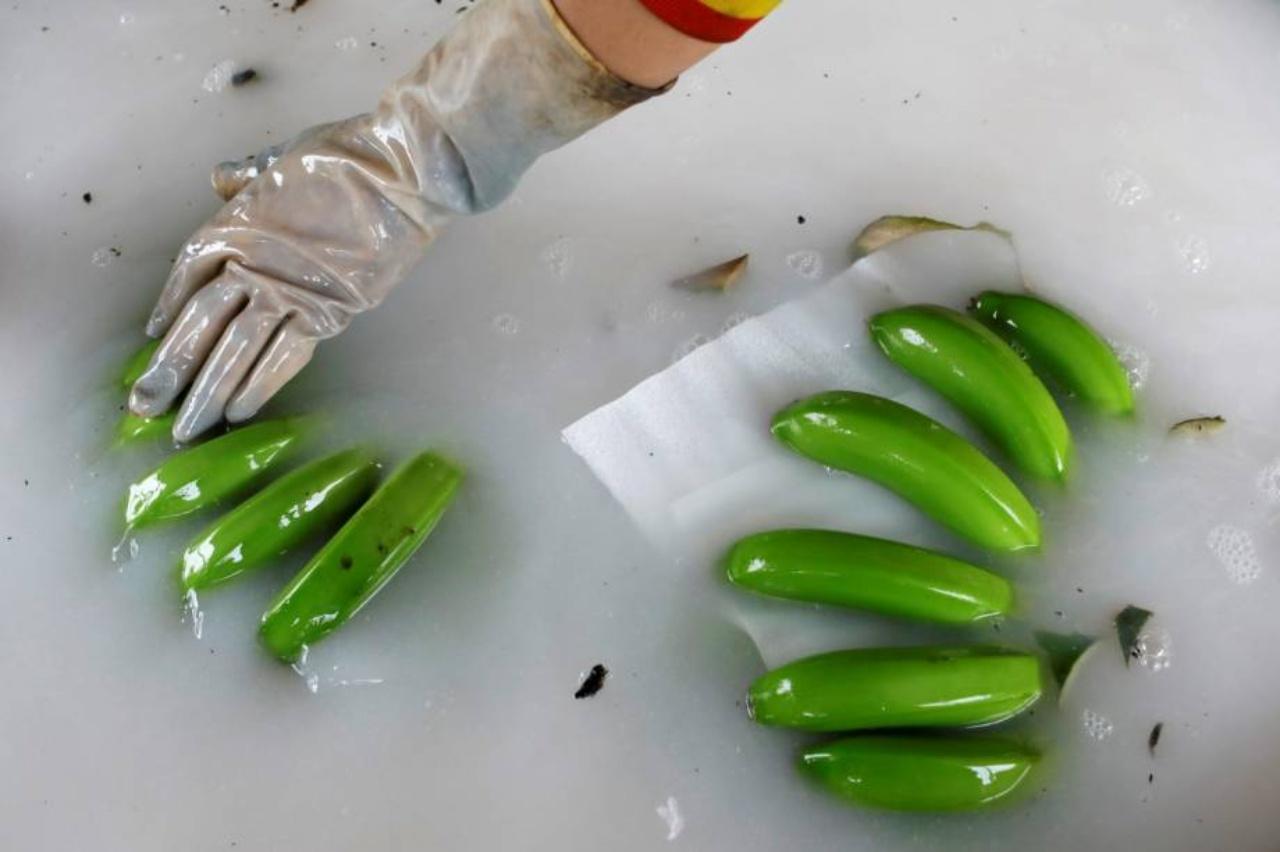 คนงานจากสวนกล้วย ยังเล่าต่อว่า ขั้นตอนการปลูกนั้น ทางชาวจีนจะได้ส่งเนื้อเยื้อกล้วยหอมเขียวมาให้กับทางสวน ซึ่งเป็นสายพันธุ์พิเศษ มีรสชาติดี ส่วนการใส่ปุ๋ย ลอตแรกระยะลงหลุม 3-4 วันจะให้ปุ๋ยสูตร 16-16-16 และผ่านไป 10-15 วันจะให้ปุ๋ยอีกครั้ง ประมาณ 1 เดือน จะให้ปุ๋ย 3 ครั้ง