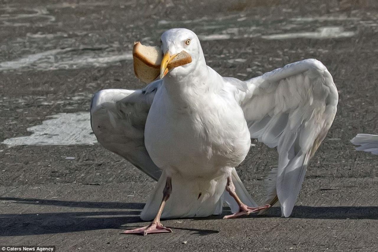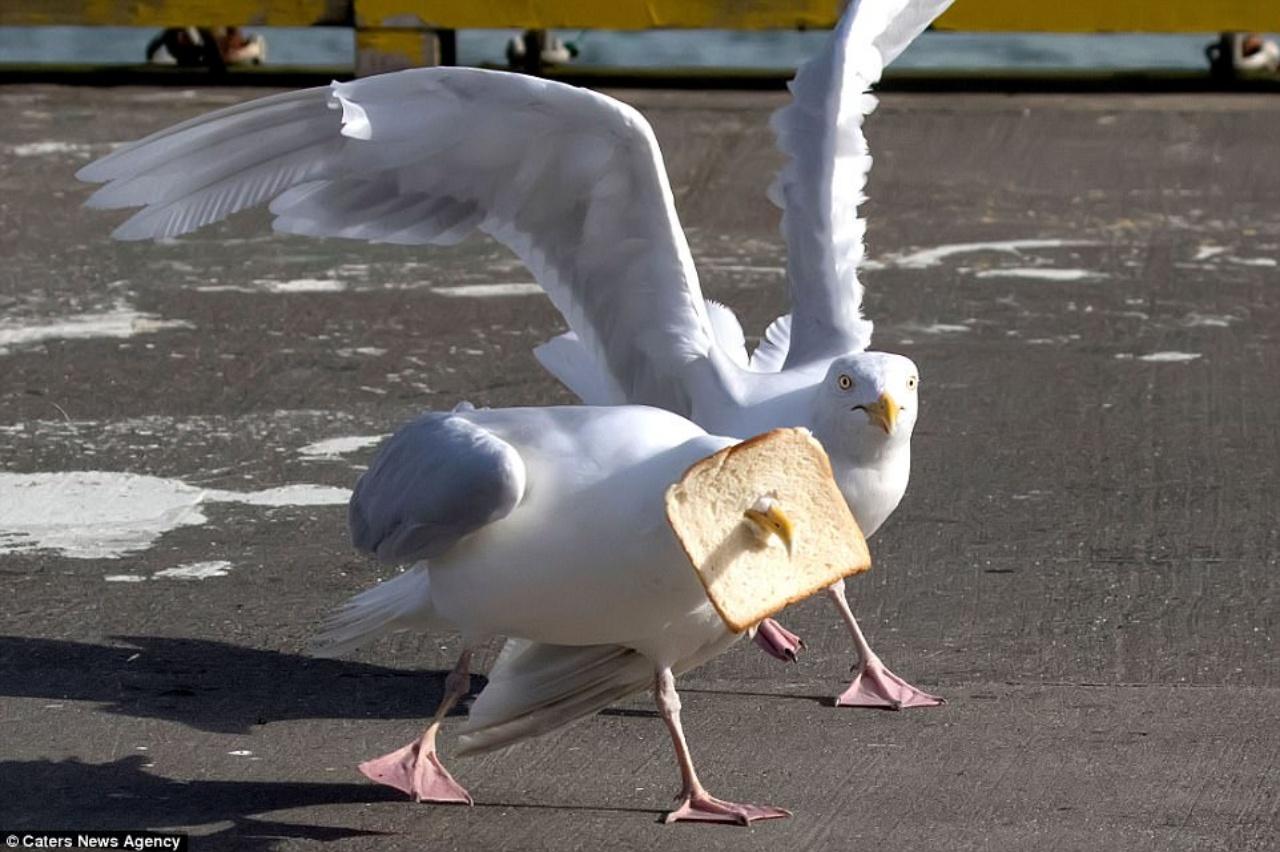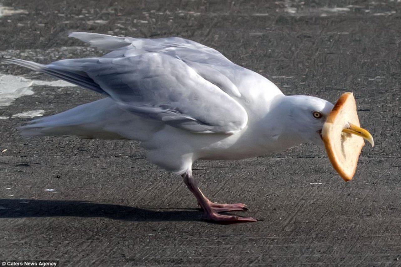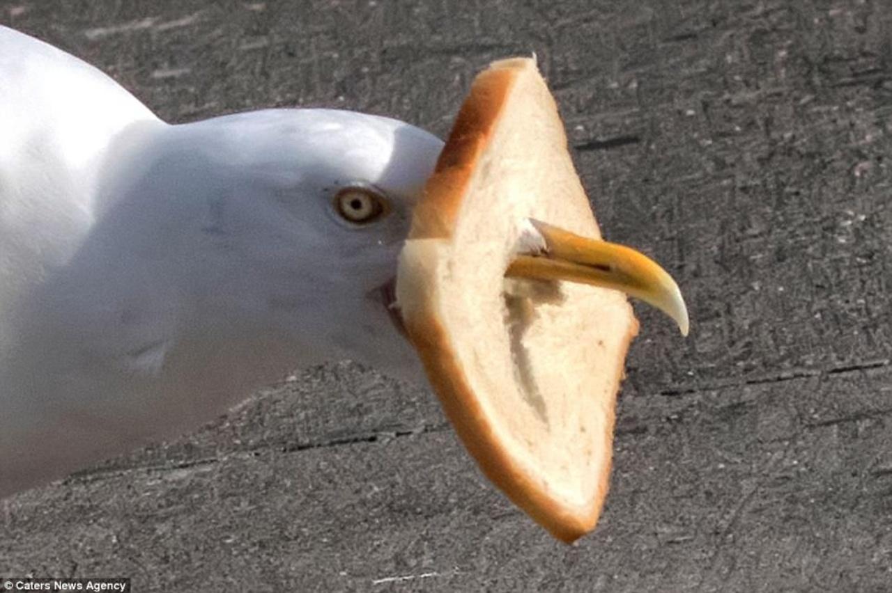 ช่างภาพชาวไอซ์แลนด์ Finnur Adresson สามารถจับภาพ เจ้านกนางนวลจอมตะกละ ที่คงจะอยู่ในอาการหิวและตื่นเต้นมากเกินไป จนกระทั่งเร่งรีบจิกกินอาหารจนพลาด ถึงขนาดเอาจงอยปากไปคาอยู่กับแผ่นขนมปัง จนกระทั่งเรียกเสียงหัวเราะของผู้คนที่เฝ้ามองดูพฤติกรรมของมันอยู่บริเวณท่าเรือแห่งหนึ่ง ในประเทศไอซ์แลนด์