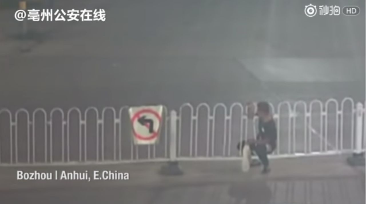 สำนักข่าว people’s daily ของประเทศจีน เผยแพร่คลิปความยาวประมาณ 27 วินาที ของ หนุ่มเคราะห์ร้ายรายหนึ่ง ที่พลาดท่าเจอเรื่องน่าอับอายขายหน้า จากต้นเหตุ การไม่รู้จักรักษาระเบียบวินัยจราจร โดยการพยายามข้ามถนนในจุดที่มีรั้วกั้น โดยเอาสะดวกนึกว่าตัวเองจะสามารถรอดข้ามไปได้ ทั้งๆ ที่มีป้ายห้ามติดไว้อย่างชัดเจน
