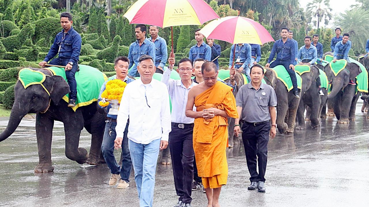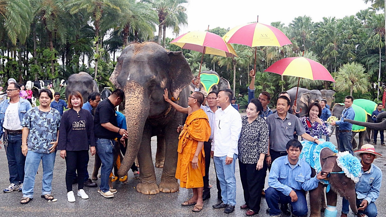 นายกัมพล ตันสัจจา ผู้อำนวยการสวนนงนุชพัทยา ได้จัดให้มีพิธีรับขวัญนำแม่ช้างกับลูกช้างทั้ง 6 คู่ พร้อมพ่อพันธุ์ชั้นดี 3 เชือก คือ พลายเบิร์ด, พลายนิ้งหน่อง และพลายไม้เมือง แห่อวยชัยอวดโฉมสู่สายตานักท่องเที่ยวทั่วโลกให้ได้ชมกันอย่างใกล้ชิด มีขบวนกองยาว และแตรวง มาร่วมสร้างสีสันและความคึกครื้น ท่ามกลางคณะผู้บริหาร และโขลงช้างกว่า 30 เชือก ที่มาร่วมแสดงความยินดี ทั้งนี้ ได้นิมนต์พระครูเกษมกิตติโสภณ หรือ อาจารย์จ่อย เจ้าอาวาสวัดสามัคคีบรรพต มาทำพิธีสวดชัยมงคลคาถา คล้องพวงมาลัยดอกดาวเรือง เจิมหน้าผากรับขวัญลูกช้าง พร้อมประพรมน้ำพระพุทธมนต์ เพื่อความเป็นสิริมงคล ให้ลูกช้างมีความเฉลียวฉลาด และสุขภาพร่างกายแข็งแรงสมบูรณ์ พร้อมตั้งชื่อลูกช้างเชือกนี้ว่า "พังจริงใจ" และที่สำคัญแม่ช้างทั้ง 6 เชือก ยังได้เป็นแม่นมแบ่งปันน้ำนมเพื่อเลี้ยงอีก 1 ชีวิต คือ พังฟ้าแจ่ม ลูกช้างป่าที่ได้รับบาดเจ็บและพลัดหลงกับแม่ช้าง ที่ทางสวนนงนุชพัทยา ได้เลี้ยงดูไว้เพื่อให้มีชีวิตรอดต่อไป.