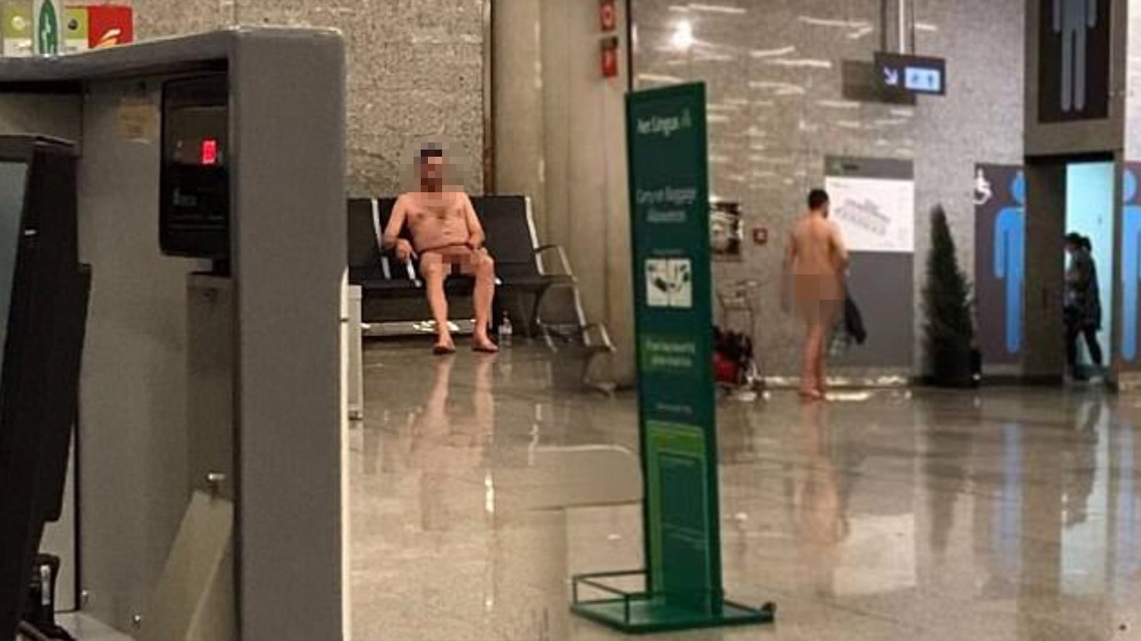 นอกจากนี้ กระทาชายนิรนามซึ่งไร้ซึ่งเสื้อผ้าพันกายแม้แต่สักชิ้นเดียวรายนี้คงกลัวว่า ตัวเองยังเป็นจุดสนใจไม่พอ ชีเปลือยรายนี้จึงได้สร้างความน่าประหลาดใจเพิ่มเติม ด้วยการเดินแก้ผ้าโทงๆ ไปทั่วสนามบิน ทั้งๆ ที่อยู่ในช่วงเวลาที่มีผู้คนพลุกพล่าน แถมเมื่อโชว์เปลือยจนเป็นที่พออกพอใจแล้ว เขาจึงไปนั่งพักที่เก้าอี้ตัวหนึ่งด้วยสีหน้าเรียบเฉย ไม่มีท่าทีสะทกสะท้านแต่อย่างใด และเมื่อผ่านไปไม่นาน จึงได้ลุกขึ้นและเดินหายเข้าไปในห้องน้ำของสนามบิน