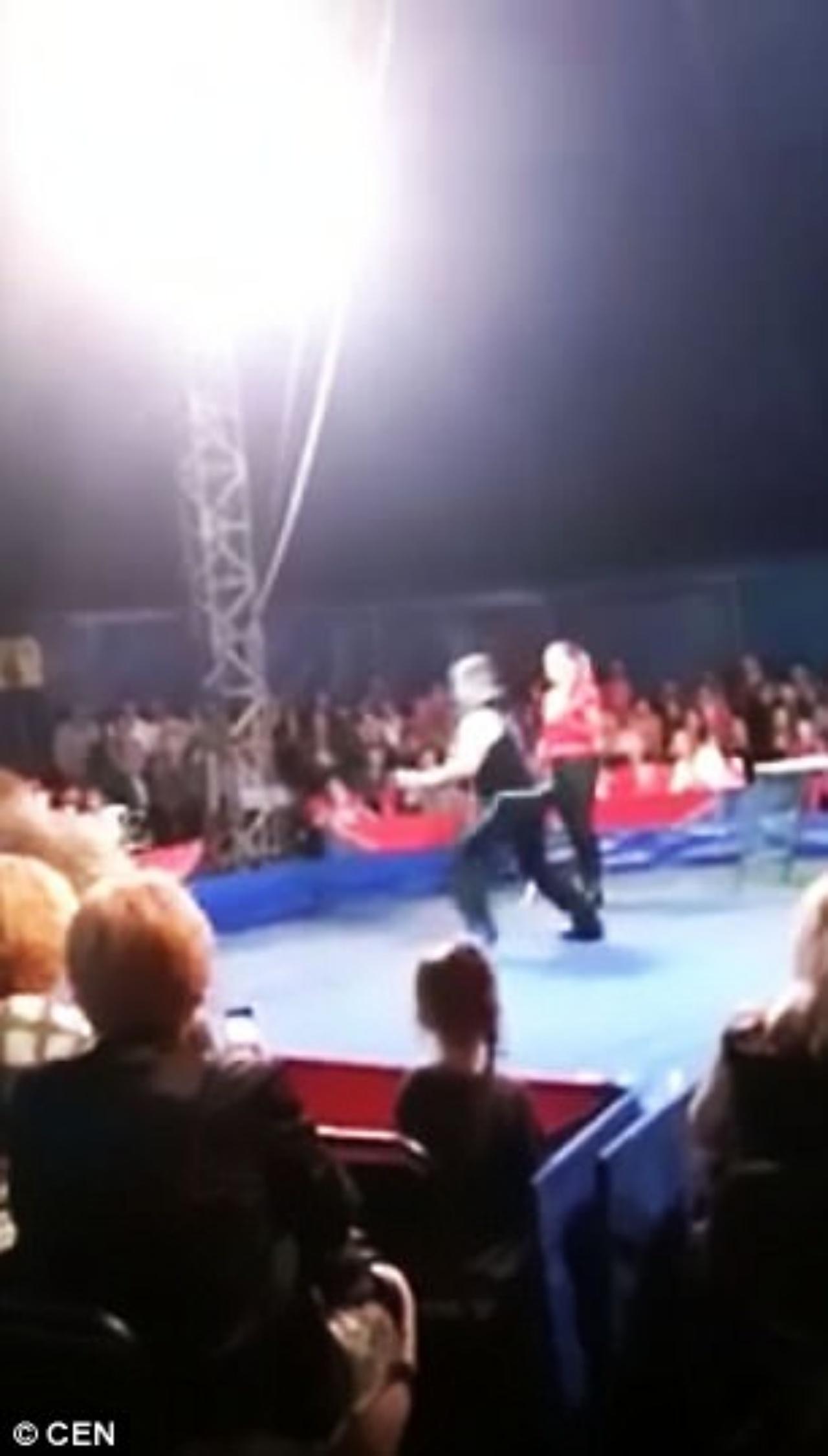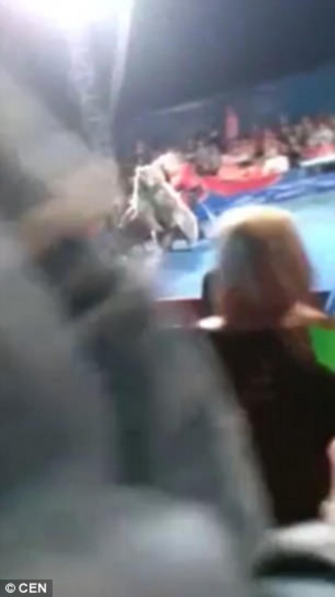 ต่างประเทศ เผยแพร่คลิปสยองขวัญ ซึ่งบันทึกภาพ เหตุการณ์หมียักษ์ในคณะละครสัตว์แห่งหนึ่ง ในเมือง Bila Tserkva ของประเทศยูเครน ที่จู่ๆ ก็ผละจากครูฝึก ก่อนจะกระโดดข้ามกำแพงเข้าใส่กลุ่มผู้ชมซึ่งส่วนใหญ่เป็นเด็ก จนเป็นเหตุให้มีผู้ได้รับบาดเจ็บหลายราย แต่เบื้องต้น ยังไม่เป็นที่แน่ชัดว่า สาเหตุของการได้รับบาดเจ็บนั้น เกิดขึ้นจากการโจมตีของเจ้าหมียักษ์ หรือเพราะเกิดขึ้นในระหว่างการแตกตื่นของฝูงชน ที่พยายามหลบหนีออกมาจากจุดเกิดเหตุกันแน่