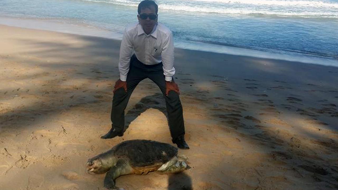 เต่ายักษ์ตายเกยตื้น ที่หาดสุรินทร์ จ.ภูเก็ต ลำตัวเส้นผ่าศูนย์กลาง 70 ซม.น้ำหนักกว่า 50 กก. ที่กระดองด้านซ้ายพบร่องรอยบาดแผล จนท.คาด ถูกใบพัดเรือฟันตาย