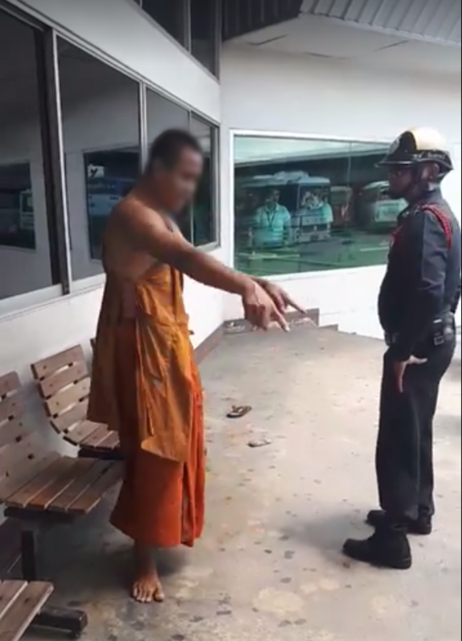โดยมีสาเหตุเกิดจากเมื่อวานนี้ พระรูปนี้ได้ไปซื้อของในซุปเปอร์มาร์เก็ตใน บขส. และชอบให้ญาติโยมจ่ายเงินให้ และรปภ.ได้เข้ามาเตือนประชาชนว่าไม่ให้จ่ายเงินให้ เนื่องจากพระรูปนี้ได้แสดงพฤติกรรมแบบนี้กับญาติโยมหลายคนแล้ว พระรูปนี้จึงเกิดอาการโมโหขึ้นมา จึงตะโกนด่าและผลักอก รปภ. รวมทั้งยังท้าคนอื่นๆ ต่อยอีกด้วย อีกทั้ง เมื่อตนเดินผ่านหน้าก็ถูกพระรูปนี้ด่าเป็นสัตว์ชนิดหนึ่งด้วยเช่นกัน