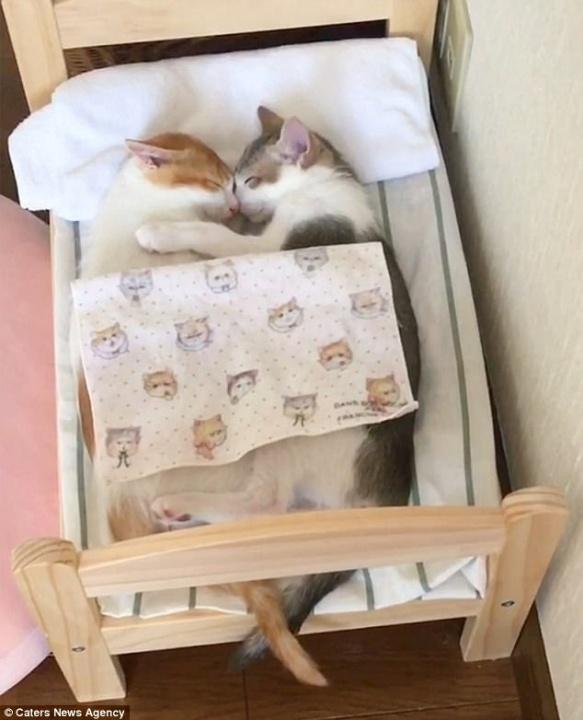 บรรดาสาวกคนรักแมวทั่วโลก ถึงกับอ่อนระทวยเสียอาการ เมื่อมีการเผยแพร่คลิป เจ้าแมวสองพี่น้อง นามว่า Canele และ Amelie อายุ 3 เดือน ตระกองกอดกันชนิดมุ้งมิ้งฟุ้งฟิ้งชวนฟิน น่ารักเกินบรรยาย ลงบนโลกโซเชียลมีเดีย โดย Rie Tamura เจ้าของชาวญี่ปุ่นของมัน ซึ่งเลี้ยงเจ้า 2 ตัวแสบนี้มาได้ประมาณ 1 เดือน เปิดเผยถึงที่มาที่ทำให้บรรดาสาวกทาสแมวเกิดอาการมือไม้อ่อนระทวยเสียอาการ ว่า เจ้า Canele และ Amelie มันมักจะนอนไม่ค่อยหลับ หากไม่ได้นอนกอดกันภายใต้เตียงสุดนุ่ม และผ้าห่มสุดหรู รวมถึงมีตุ๊กตาหมีวางอยู่เคียงข้าง ในแบบที่ปรากฏในคลิป