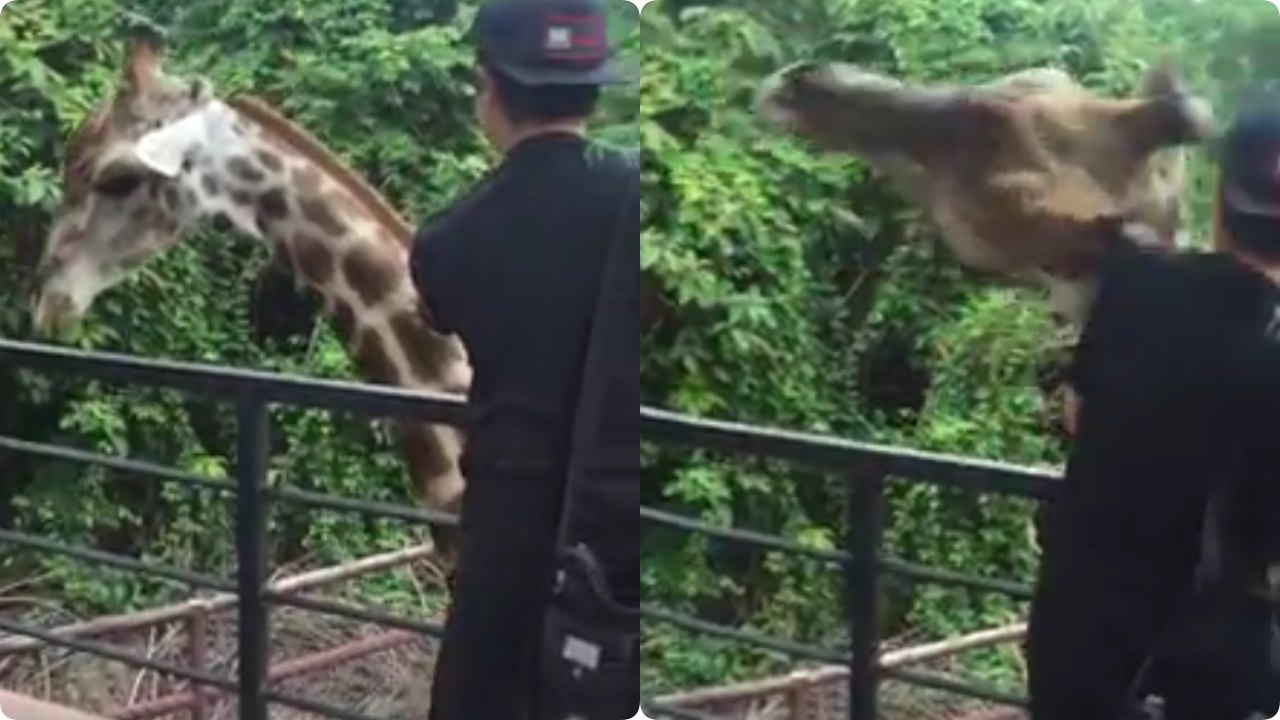 หนุ่มโพสต์คลิป หวิดถูกยีราฟขวิด หลังจะเข้าไปจับขณะมันกำลังกินอาหาร โชคดีหลบได้หวุดหวิด บาดเจ็บเล็กน้อย ด้านสัตวแพทย์เตือน มันคือวิธีการป้องกันตัว เชื่อหากอยู่ในระนาบเดียวกัน อาจโดนเตะ ซึ่งหนักกว่า แนะเที่ยวสวนสัตว์ต้องเคารพกฎ
