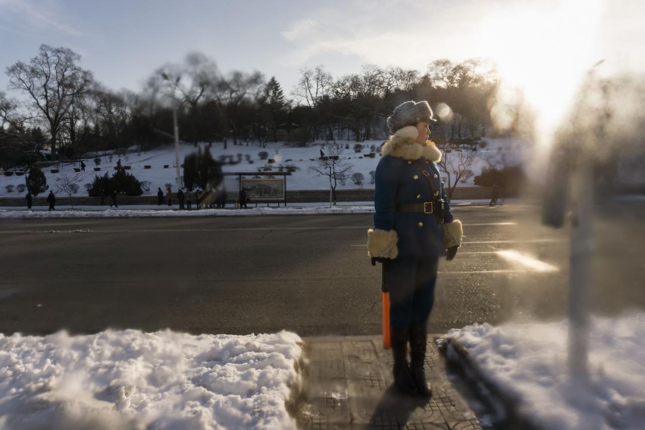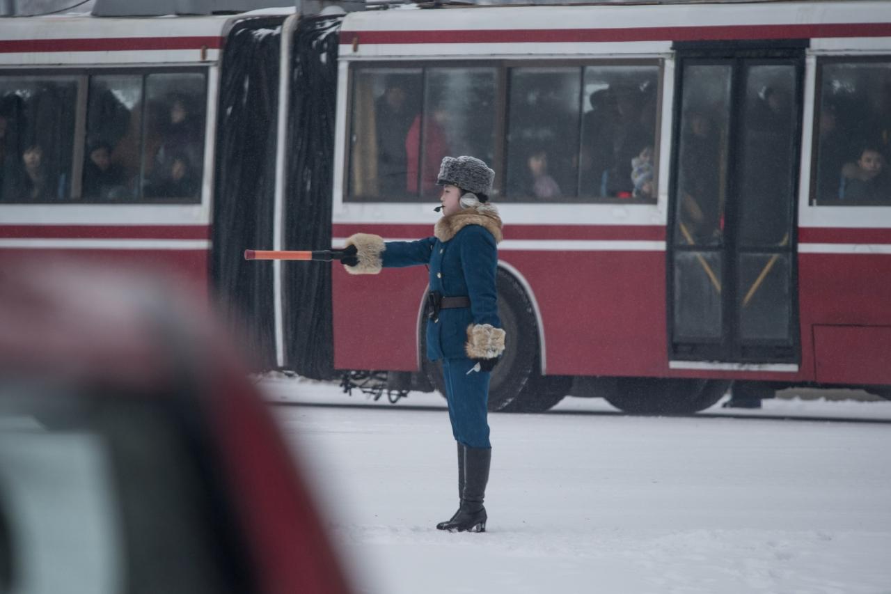 ชมภาพตำรวจจราจรหญิงแห่งกรุงเปียงยาง ตำรวจสาวท่าทางทะมัดทะแมง คอยยืนอำนวยความสะดวกให้ประชาชนผู้ใช้รถใช้ถนน เจ้าหน้าที่อาวุโสของกองกำลังรักษาความปลอดภัย เผย แม้จราจรไม่พลุกพล่าน แต่ระเบียบวินัยเป็นเรื่องที่ขาดไม่ได้...