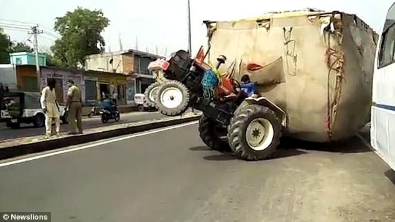 สำนักข่าวต่างประเทศ รายงานการขับรถส่งของที่สุดแสนจะพิสดารเกินบรรยาย ในเมืองโชมู ประเทศอินเดีย เมื่อมีการนำเสนอคลิป รถแทรกเตอร์คันหนึ่ง ที่ด้านหลังบรรทุกสินค้าที่เป็นอาหารสัตว์มาจนเต็มเหยียด จนกระทั่งทำให้ล้อหน้าทั้งสองล้อของรถแทรกเตอร์ ยกขึ้นเหนือพื้น แต่คนขับก็ยังพยายามดันทุรังพาทั้งรถแทรกเตอร์เจ้ากรรม และสินค้าน้ำหนักเกินเหล่านั้น วิ่งไปบนถนนได้จนสำเร็จทั้งๆ ที่สุดแสนจะเสี่ยงอันตรายต่อทั้งตัวเองและผู้ร่วมใช้เส้นทางก็ตาม