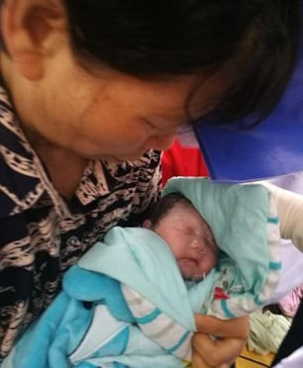 และด้วยเหตุที่การจราจรติดขัดอย่างมาก แม้จะมีความพยายามเรียกแท็กซี่ไปส่งเธอที่โรงพยาบาล ที่สุดก็ยังไม่ทันการณ์ เห็นดังนั้น บรรดาพลเมืองดีจึงตัดสินใจทำห้องคลอดฉุกเฉิน ซึ่งทำด้วยร่มและผ้าห่มเอาไว้กลางถนน และเมื่อนำร่างของหญิงท้องแก่คนนี้เข้าไปได้ กระบวนการช่วยทำคลอดแบบเร่งด่วนสุดๆ จึงเริ่มต้นขึ้น โดยใช้เวลาหลังจากเกิดอาการเจ็บท้องเพียง 10 นาทีเท่านั้น