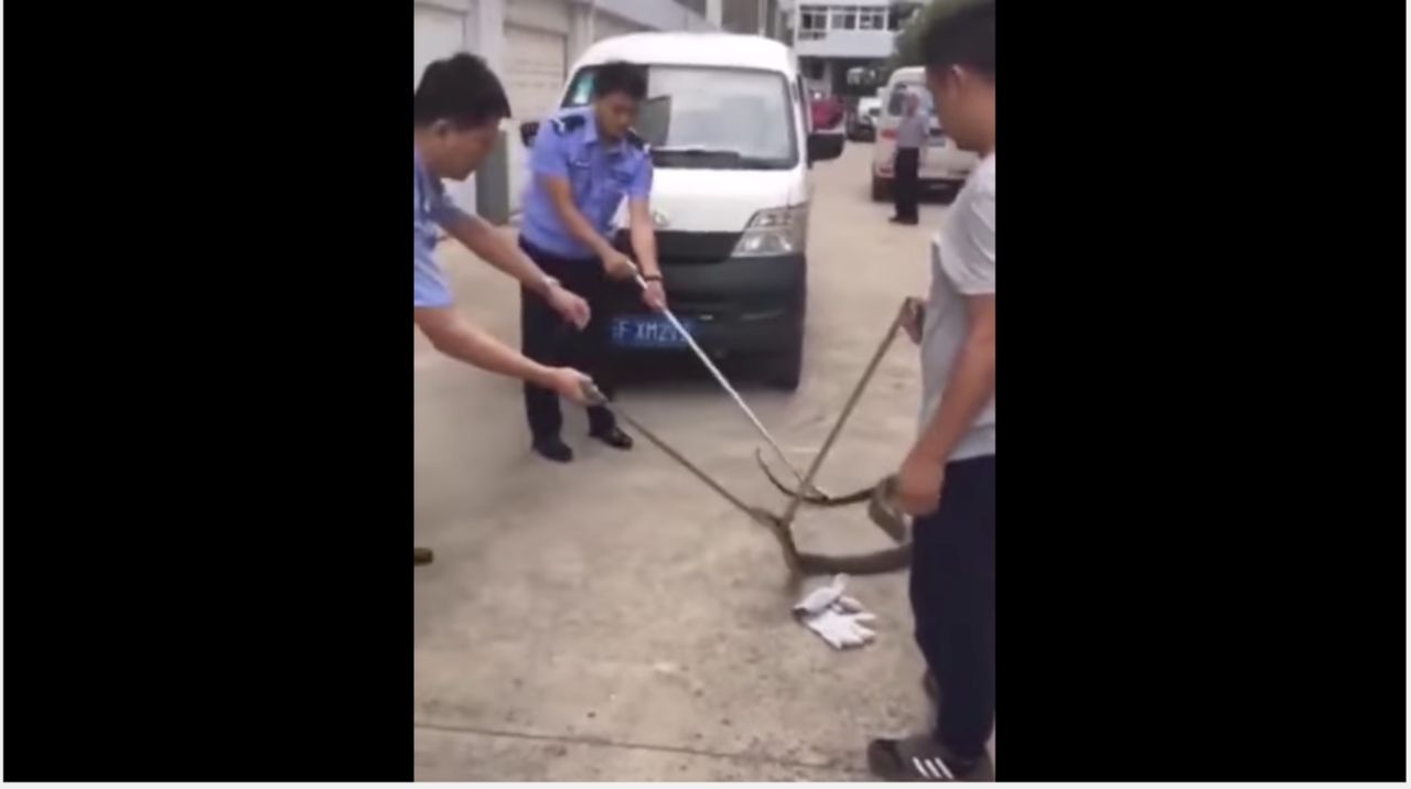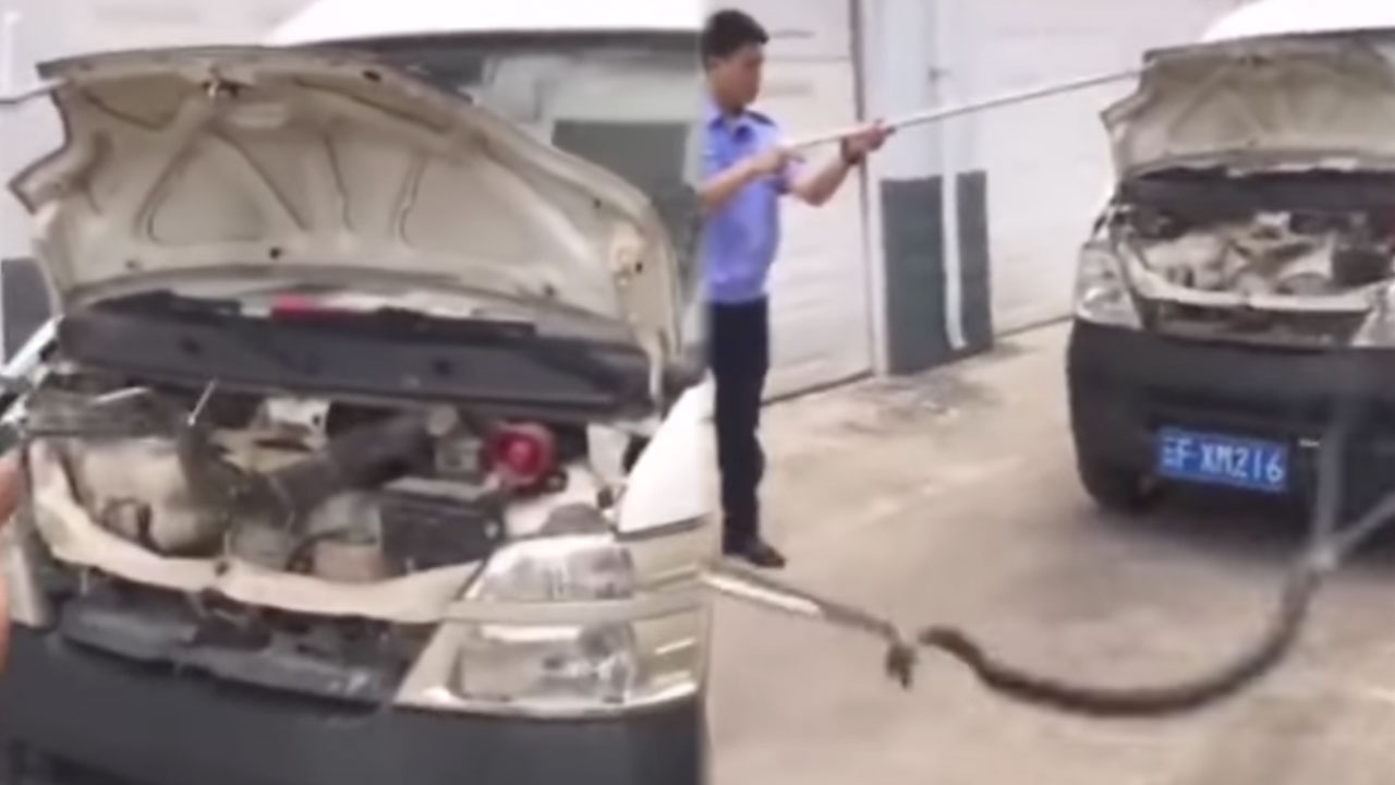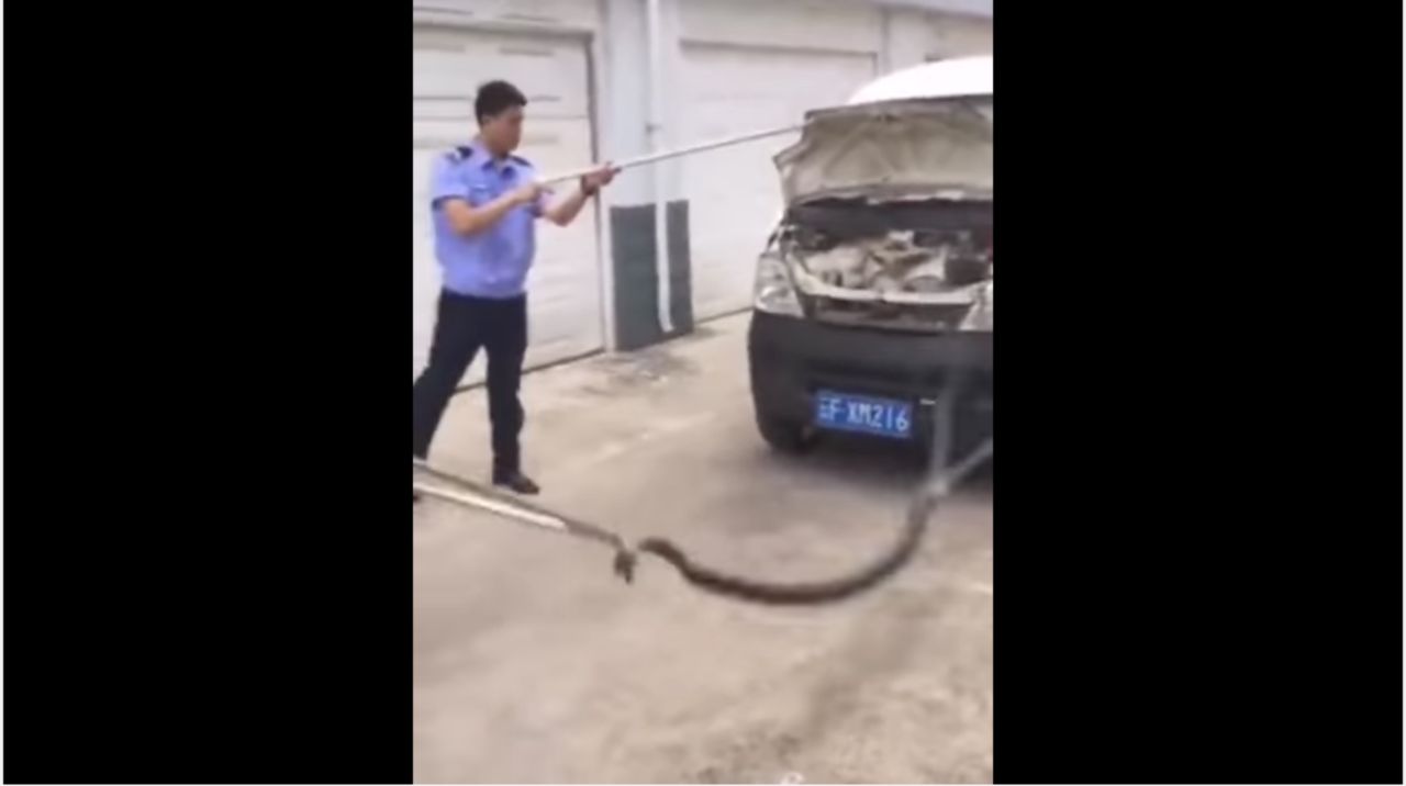 ข่าวคราวเจองูยักษ์ไปอยู่ในสถานที่ ที่ไม่ควรอยู่ ใช่ว่าจะมีแต่ในเมืองไทยซะแล้ว หลังล่าสุด สำนักข่าว People’s Daily ของประเทศจีน เผยแพร่คลิป เจ้าหน้าที่ตำรวจในมณฑลยูนนาน ซึ่งตั้งอยู่ทางภาคตะวันตกเฉียงใต้ของจีน ต้องร่วมด้วยช่วยกัน ออกแรงงัดงูจงอางยักษ์ ขนาดความยาวเกือบ 3 เมตร น้ำหนักร่วม 4.6 กิโลกรัม ออกมาจากฝากระโปรงเครื่องยนต์ของรถมินิแวนคันหนึ่ง โดยกว่าจะจับเจ้างูยักษ์ตัวนี้ ออกมาได้ ก็เล่นเอาทั้งตำรวจและพลเมืองดี ต้องเปลืองแรงกันไปพอสมควรเลยทีเดียว