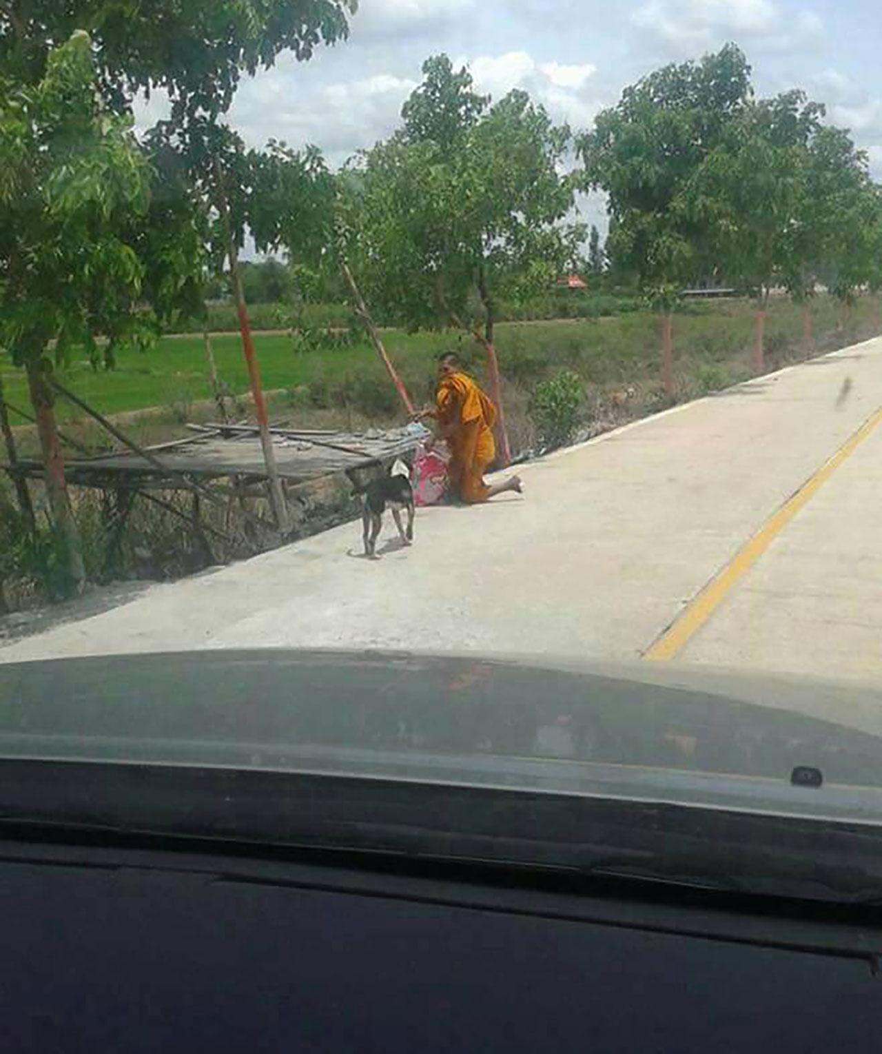 ส่วนภาพที่มีการแชร์ออกไปอย่างกว้างขวางในโลกโซเชียลนั้น พระนิรันทร์ กล่าวถึงเรื่องดังกล่าวว่า โดยปกติเวลาที่ตนไปล้างแผลที่อนามัย ตนจะนำข้าวปลาอาหารแบกติดตัวไปด้วย เพราะระหว่างทางจะมีหมาแมวจรจัดที่อาศัยอยู่ตามข้างทาง หรือที่รกร้างอยู่เป็นจำนวนมาก ซึ่งสัตว์พวกนี้จะซูบผอม และไม่ค่อยได้กินอาหาร ด้วยความสงสาร ตนจึงนำเงินส่วนตัวที่ได้มาจากการบริจาคของญาติโยมไปซื้ออาหารให้กับหมาแมวพวกนี้ ซึ่งภาพที่แชร์กันออกไปนั้น น่าจะถ่ายจากคนที่ขับรถผ่านไปผ่านมาในบริเวณนั้นพอดี