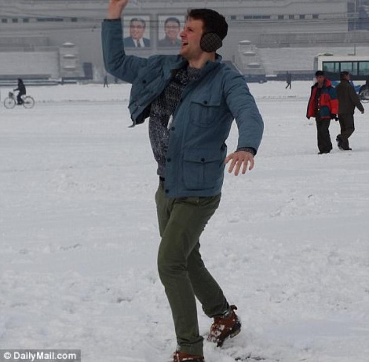 โดยภาพถ่ายเหล่านั้นแสดงให้เห็นว่า นศ.หนุ่มผู้เคราะห์ร้ายกำลังมีความสุขอย่างยิ่ง กับการที่ได้ใช้ชีวิตผสมผสานไปกับผู้คนท้องถิ่นของเกาหลีเหนือ ไม่ว่าจะเป็นการ ดื่มเบียร์ การยิ้มแย้มถ่ายรูปร่วมกับเพื่อนใหม่ๆ ในกรุ๊ปทัวร์ และผู้คนชาวเกาหลีเหนือ ก่อนที่เขาจะถูกจองจำ โทษฐานขโมยโปสเตอร์โฆษณาชวนเชื่อของทางการโสมแดงในโรงแรมที่พัก จนกระทั่งถูกตัดสินจำคุกและต้องทำงานหนักถึง 15 ปี