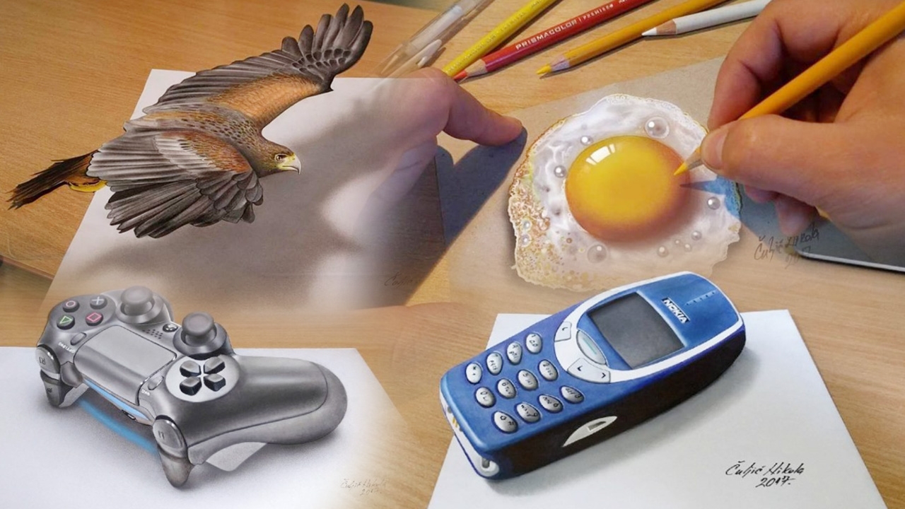 สำนักข่าว Daily’s people ของประเทศจีน เผยแพร่รูปภาพที่ทำให้ใครหลายคนเกิดอาการตาค้าง ถึงขนาดอาจหลงกลพยายามใช้มือไปหยิบจับต้องมัน ทั้งๆ ที่ในความเป็นจริงแล้วมันเป็นเพียงภาพวาดบนกระดาษด้วยดินสอสีเทียน รวมเข้ากับเทคนิคการตัดกระดาษ และการจัดวางภาพเพื่อให้รับชมในระดับ 40 องศา จนกระทั่งทำให้ภาพวาดธรรมดาๆ กลายเป็นภาพสามมิติที่ดูเหมือนของจริงอย่างยิ่ง