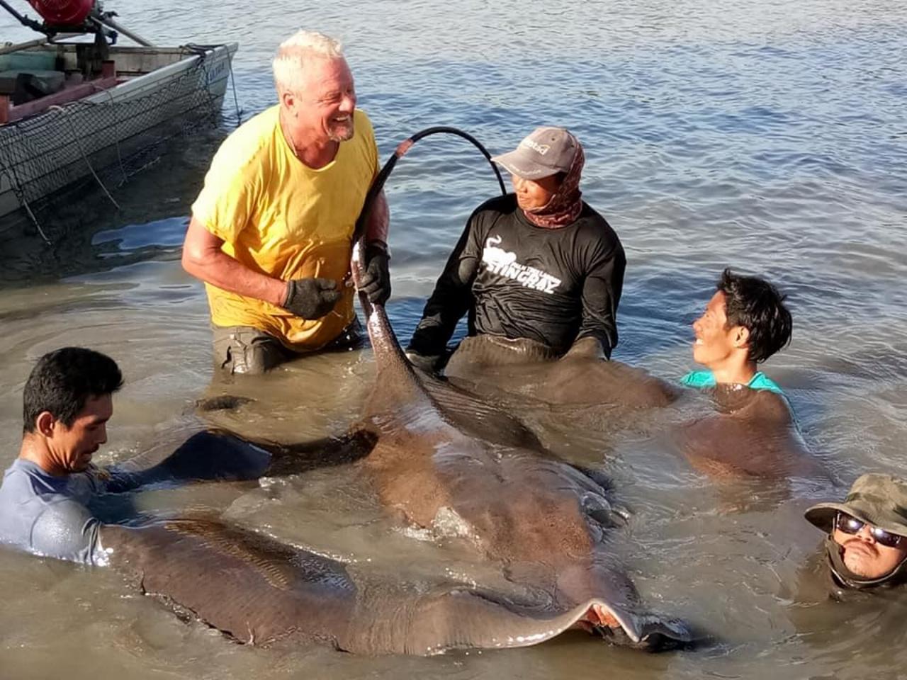 มีผู้ใช้เฟซบุ๊กที่มีชื่อว่า Benchawan Thiansungnoen ได้โพสต์ภาพการตกปลากระเบนราหูของชาวต่างชาติ รวมทั้งปลาอื่นๆ อีกหลายชนิด โดยเปิดเพจเฟซบุ๊กที่ชื่อว่า Palm Tree Lagoon Fishery ให้บริการตกปลาและถ่ายรูปกับปลาขนาดใหญ่แก่นักท่องเที่ยวต่างชาติ ขณะที่ ประกาศของทาง จ.สมุทรสาคร ห้ามทำการประมงในพื้นที่ ซึ่งได้มีเอกสารหลุดออกมาว่า มีการขออนุญาตทำประมงเพื่อการศึกษาอย่างถูกกฎหมายแล้ว