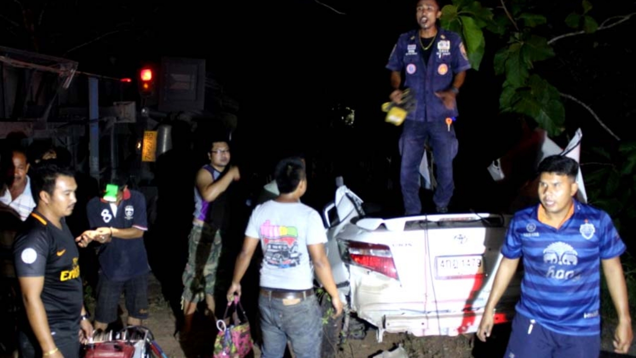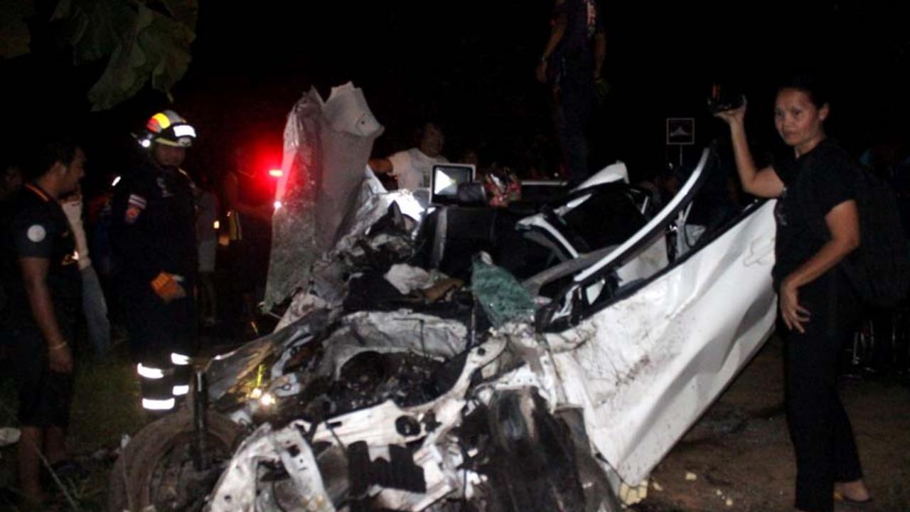 ในที่เกิดเหตุ ตร. พบรถเทรลเลอร์ 22 ล้อ ยี่ห้ออีซูซุ หมายเลขทะเบียนหัวรถ 70 2785 ชุมพร ส่วนพ่วงทะเบียน 70 2786 ชุมพร ซึ่งบรรทุกน้ำอัดลมเต็มคันรถ พลิกนอนตะแคงขวางถนนเอเชียขาขึ้น ใกล้ๆ กันพบรถยนต์เก๋งโตโยต้า สีขาว หมายเลขทะเบียน 4 กฎ 1479 กรุงเทพมหานคร ถูกชนพังยับเยิน บริเวณที่นั่งคนขับพบผู้เสียชีวิต 1 ศพ ทราบชื่อภายหลังว่า นางสาวกานต์ระวี จันทร์หนุน อายุ 32 ปี พนักงานธนาคารไทยพาณิชย์ สาขาพัทลุง และตรงที่นั่งผู้โดยสารข้างคนขับมีผู้บาดเจ็บอีก 1 ราย คือ นางสาวกัญญภัทร ชูมเดช อายุ 32 ปี อยู่บ้านเลขที่ 152 หมู่ที่ 10 ต.เกาะขันธ์ อ.ชะอวด จ.นครศรีธรรมราช พนักงานธนาคารไทยพาณิชย์ สาขาพัทลุง เช่นกัน ถูกอัดก๊อบปี้ติดอยู่กับซากรถ และอยู่ในอาการสลบ เจ้าหน้าที่หน่วยกู้ภัยจึงได้ใช้เครื่องตัดถ่างนำร่างผู้บาดเจ็บออกมาได้ นำส่งโรงพยาบาลพัทลุงในเวลาต่อมา
