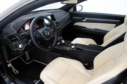 โครงสร้างแผงหน้าปัดผลิตจากคาร์บอนไฟเบอร์ ตกแต่งรอบห้องโดยสารด้วยหนังแท้คอนโซลกลางติดจอมอนิเตอร์แบบมัลติฟังก์ชั่นแป้นควบคุมคันเร่งและเบรกผลิตจากอะลูมิเนียม ภายในCockpit สร้างความรู้สึกแบบรถแข่งในทุกจุด คอนโซล เบาะ มาตรวัด หัวเกียร์ อุปกรณ์พวกปุ่มและสวิชท์แตกต่างไปจากE-Coupeอย่างสิ้นเชิง หนังแท้Alcantaraใช้ห่อหุ้มแด็ชบอร์ดโดยใช้การเย็บแบบโชว์ตะเข็บด้ายเดินเส้นบวกกับแผงคาร์บอนโชว์ลวดลายให้เห็นกันจะๆ ตะเข็บด้ายสีขาวตัดกับสีดำของหนังอย่างสวยงาม หน้าปัดและอุปกรณ์ภานในช่วยเน้นความโหดให้เพิ่มมากขึ้น วงพวงมาลัยแบบสามก้านมีสวิชท์มัลติฟังก์ชั่นสี่ทิศทางควบคุมเครื่องเสียง โทรศัพท์ และครุยคอนโทรลระบบปรับตั้งความเร็วคงที่ขณะเดินทางไกล ด้านหลังพวงมาลัยมีแป้นแพ็ดเดิ้ลชิพเพื่อการเปลี่ยนตำแหน่งเกียร์ มาตรวัดแบบอนาล็อคยอดนิยมใจกลางหน้าปัดวงโตวัดความเร็ว วัดรอบ นาฬิกา อุณหภูมิของเครื่องยนต์ ระดับน้ำมันเชื้อเพลิง คอนโซลกลางด้านบนเป็นจอมอนิเตอร์แบบมัลติฟังก์ชั่นของระบบเครื่องเสียงและภาพ กล้องถอย ระบบนำร่องด้วยดาวเทียม ต่ำลงมาเป็นชุดควบคุมเครื่องเสียง ปุ่มปรับอุณหภูมิภายในห้องโดยสาร หัวเกียร์ออโต้แบบอลูมิเนียมกับหนังแท้ใกล้กับตำแหน่งของปุ่มควบคุมโหมดสีเงินทรงกลมทำจากงานอลูมิเนียมกลึง เบาะสีครีมปรับไฟฟ้าตัวโครงเบาะทำจากเคฟล่าห์ พรมและวัสดุที่ใช้ห่อหุ้มภายในขอบอกว่าสุดจริงๆกับงานประกอบที่ประณีตในระดับสูงเหนือคำบรรยายเนื่องจากราคาที่แพงลิบลิ่วและการผลิตในแบบลิมิเต็ทอิดิชั่นนั่นเอง