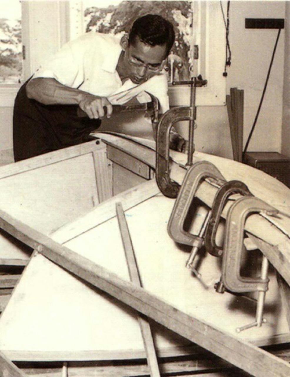 แม้จะมีพระราชภารกิจต่าง ๆ มากมาย แต่ก็โปรดที่จะต่อเรือใบพระที่นั่งด้วยพระองค์เองจำนวนหลายลำ และทรงทดลองแล่นเรือในสระภายในสวนจิตรลดา เนื่องจากพระองค์โปรดกีฬาเรือใบเป็นอย่างยิ่ง โดยเรือใบฝีพระหัตถ์ ที่สำคัญมี 3 ประเภท ได้แก่ เรือใบประเภทเอนเตอร์ไพรส์ (International Enterprise Class), เรือใบประเภทโอเค (International OK Class) และเรือใบประเภทม็อธ (International Moth Class) โดยเรือใบลำแรกที่ทรงต่อเองเมื่อวันที่ 7 ธันวาคม พ.ศ.2507 เป็นเรือใบประเภท เอนเตอร์ไพรส์ ชื่อ เรือราชปะแตน และลำต่อมาชื่อ เรือเอจี โดยทรงต่อตามแบบสากล