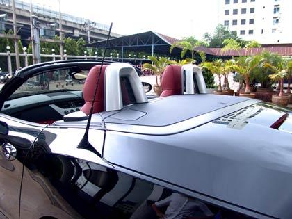 ยามปิดหลังคามันแทบจะเป็น Sport-Coupe แท้ๆ ที่งดงามดุดันจากสีดำขลับของตัวถังแต่เมื่อเปิดหลังคาไฟฟ้าออกหลังจากที่พับเก็บอย่างนิ่มนวลและเงียบเชียบมันจะกลายสภาพไปเป็น Roadster ทรงย้อนยุคอย่างทันทีทันควัน ด้วยเวลาเพียง 20 วินาทีของการทำงานในกลไกกางออกหรือพับเก็บด้วยระบบมอเตอร์ไฟฟ้า