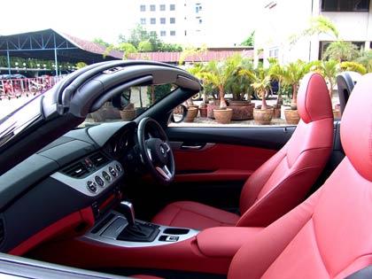 ข้อดีของขนาดถังตัวที่ใหญ่ขึ้นคือพื้นที่ของห้องโดยสาร ทำให้การขยับหัวไหล่ ช่วงพื้นที่เหนือศีรษะและขาเป็นไปด้วยความสะดวกสบายมากขึ้นกว่าตัวเก่า รวมถึงโครงสร้างของตัวรถที่แข็งแกร่งมากขึ้น Z4 S-Drive 23i คันทดสอบมีเบาะแบบสปอร์ตใช้หนังแท้ Dagota สีแดงตัดกับคอนโซลสีดำและเงิน ปุ่มปรับควบคุมอุณหภูมิดิจิตอลแบบแยกส่วนอยู่ตรงกลางคอนโซลใช้รูปแบบทรงกลมเป็นตัวนำเสนอและทำออกมาได้ปราณีตสมราคา ปุ่ม Start-Stop เครื่องยนต์อยู่ใกล้กับพวงมาลัยจึงไม่ต้องเอื้อมมือไปมากนัก ชุดเครื่องเสียงแบบ CD โหลดด้านหน้าพร้อมชุดลำโพงให้เสียงที่ดีเกินตัว วงพวงมาลัยสามก้านมีสวิชท์มัลติฟังชั่นปรับเปลี่ยนโหมดการควบคุมต่างๆ หลังพวงมาลัยมีแป้นเปลี่ยนตำแหน่งเกียร์แบบแพ็ตเดิ้ลชิพสีเงิน