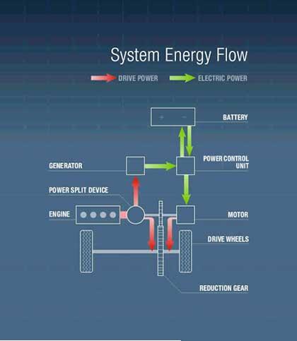 ในการขับขี่แบบปกติโดยใช้ความเร็วคงที่สำหรับการเดินทางไกล เครื่องยนต์ 2AZ FXE VVT-i ที่มีแรงม้า 150 ตัวกับแรงบิด 187 นิวตันเมตรจะทำงานร่วมกันระหว่างมอเตอร์ไฟฟ้าขนาด 140 กิโลวัตต์ ชุดมอเตอร์ประกอบไปด้วย มอเตอร์ เจเนเรเตอร์ MG1 เพื่อสร้างกระแสไฟฟ้าเพื่อประจุเข้าสู่แบตเตอร์รีและส่งกระแสไฟดังกล่าวไป ยังมอเตอร์ขับเคลื่อนหรือ MG2 โดยยังทำหน้าที่เป็นมอเตอร์สตาร์ทให้กับเครื่องยนต์อีกด้วย พลังงานส่วนเกินที่ไม่ได้ใช้จะถูกแปลงเป็นพลังงานไฟฟ้าเพื่อประจุเข้าสู่แบต เตอร์รีในการหมุนเวียนพลังงานอย่างมีคุณภาพ เมื่อผู้ขับขี่เร่งเครื่องยนต์ในทางที่ลาดชันหรือกดคันเร่งเพื่อแซงรถช้า พลังงานจากแบตเตอร์รีที่เก็บอยู่จะถูกส่งไปยังมอเตอร์ไฟฟ้าเพื่อช่วยเสริมใน การขับเคลื่อน ช่วยทำให้ตัวรถมีกำลังที่มากขึ้นจากการทำงานที่พร้อมเพรียงกันของระบบทั้งสอง ในการลดความเร็วหรือแม้แต่การเบรค เครื่องยนต์จะหยุดทำงานโดยจะเหลือการทำงานของมอเตอร์ไฟฟ้าซึ่งจะทำหน้าที่ เป็นเครื่องกำเนิดไฟฟ้าและทำการเปลี่ยนพลังงานจลน์ที่ได้จากการเบรคหรือจากล้อที่หมุนเวียนไปเป็นพลังงานไฟฟ้าเพื่อประจุเข้าสู่แบตเตอร์รี เมื่อตัวรถหยุดนิ่งในขณะที่จอด เครื่องยนต์และมอเตอร์ไฟฟ้าจะหยุดทำงานทันทีโดยเหลือเพียงระบบปรับอากาศที่ ยังทำงานอยู่โดยรับเอาพลังงานมาจากแบตเตอร์รี