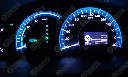 ภายใน ห้องโดยสารมีบรรยากาศแบบสุขุมนุ่มลึกออกสไตล์ผู้ใหญ่ที่เน้นความหรูหราด้วย ลายไม้สีสว่างสดใส แผงหน้าปัด ปุ่มสวิชท์ต่างๆ ให้ผิวสัมผัสที่ดีในการใช้งาน มาตรวัดแบบเรืองแสงครึ่งวงกลมซ้อนกัน ซ้ายมือบอกระดับพลังงานที่ใช้ในการวิ่งต่อหน่วยกิโลเมตร/ลิตร ส่วนขวามือบอกตัวเลขความเร็วเป็นแบบกิโลเมตรต่อชั่วโมง พร้อมจอแสดงผลในการทำงานระหว่างการชารจ์ไฟ การถ่ายเทพลังงานระหว่างเครื่องยนต์ แบตเตอร์รีและมอเตอร์ไฟฟ้า โดยมีมาตรวัดระดับน้ำมันเชื้อเพลิงและอุณหภูมิของเครื่องยนต์มาให้ครบ คอนโซลกลางมีจอมัลติฟังก์ชั่นใช้ระบบหน้าจอแบบสัมผัสในการสั่งงาน ซึ่งเป็นทั้งระบบให้ความบันเทิงและระบบนำร่อง เช่น วิทยุ / DVD / CD / MP3 / โทรศัพท์แบบ Buletooth / ช่องเชื่อมต่อ USB / พร้อมด้วยระบบนำทางด้วยดาวเทียมในรุ่น Top สุด ต่ำลงมาเป็นชุดควบคุมอุณหภูมิแบบดิจิตอลแยกส่วนซ้าย-ขวา Dual-Auto Air Condition รวมถึงช่องแอร์สำหรับผู้โดยสารตอนหลัง เบาะหนังแท้คู่หน้าปรับด้วยไฟฟ้าพร้อมพัดลมในเบาะช่วยเพิ่มความเย็นใน ระหว่างการจอดรถท่ามกลางแสงแดดและใช้งานได้จริง สวิชท์กับปุ่มของอุปกรณ์ต่างๆถูกจัดวางมาอย่างลงตัว ลายไม้ที่ใช้ตกแต่งมีสีสันที่สวยงามเพิ่มความหรูให้กับห้องโดยสารได้เป็น อย่างดี พวงมาลัยแบบ 4 ก้านหุ้มทั้งหนังและไม้มีสวิชท์มัลติมาให้ปรับตั้งชุดเครื่องเสียงกับการ ปรับอุณหภูมิแบบครบๆ คอนโซลเกียร์แบบร่องหรือ Gate Type ใช้หัวเกียร์หุ้มหนังจับได้กระชับมือดีส่วนการดันขึ้นลงเป็นไปตามธรรมชาติ ซึ่งแทบไม่ต้องออกแรงอะไรกันมากนักโดยดันไปตามร่องของตัว Gate ระบบเกียร์อัตโนมัติเดินหน้าแบบ ECVT- Electrically-Controlled Continuously Variable Transmission ให้ความต่อเนื่องในการส่งถ่ายกำลังลงสู่ล้อคู่หน้า ระบบความปลอดภัยอยู่ในระดับสูงสุดด้วยถุงลมนิรภัย SRS ในตำแหน่งคนขับและคนนั่ง รวมถึงถุงลมนิรภัยด้านข้างแผงประตูพร้อมด้วยโครงสร้างนิรภัยแบบ GOA ที่พัฒนาโดยวิศวกรของค่ายสามห่วงสำหรับรถ Toyota โดยเฉพาะ
