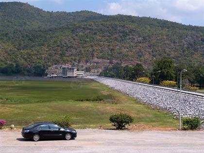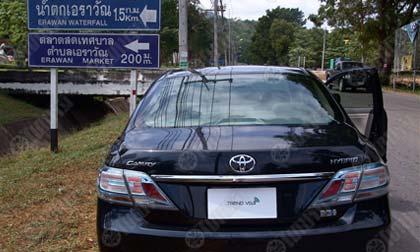 หลังจากถ่ายรูปบนเขื่อนเสร็จ รถ Audi Q7 จึงปลีกตัวกลับที่พักในจังหวัดกาญจนบุรีเพื่อกลับไปเตรียมงานสัมมนา ส่วนผมกับเจ้า Toyota New Camry Hybrid มุ่งหน้าต่อไปยังน้ำตกเอราวัณซึ่งอยู่ใกล้ๆกับเขื่อนศรีนครินทร์ สภาพเส้นทางโล่งๆในช่วงเที่ยงวันศุกร์ทำให้สามารถทดสอบการเบรคแบบเต็มกำลัง ในขณะที่วิ่งด้วยความเร็วสูง การเบรคตัวรถที่มีน้ำหนักกว่า 1.6 ตันแบบเจ้า Camry Hybrid เป็นไปตามธรรมชาติของระบบดิสเบรค มีอุปกรณ์ช่วยเหลือที่ให้มาครบๆเช่น ระบบป้องกันล้อล็อค ABS 4 Sensor 4 Channel ระบบกระจายแรงเบรค EBD -Electronic Brake ForceDistribution ระบบเสริมแรงเบรคหรือ BA-Brake Assist ระบบป้องกันล้อหมุนฟรีTRC คอยจัดการ ความรู้สึกเมื่อเบรคแรงๆสามารถรับรู้ถึงระบบ ABS ที่ทำหน้าที่จับ-ปล่อยจานดิสด้วยเซนเซอร์กับปั๊ม ABS เบรคมาไวตามสไตล์ดิสเบรคแต่ระยะทางในการเบรคของ Camry Hybrid จะมากกว่า Toyota Altis เล็กน้อยเนื่องจากมีน้ำหนักตัวมากกว่าหลายร้อยกิโลกรัม อัตราการสิ้นเปลืองเชื้อเพลิงอยู่ในระดับที่ดีกว่ารถซีดานขนาดกลางทั่วไป เนื่องจากมีระบบ Hybrid ซึ่งใช้มอเตอร์ไฟฟ้าเข้ามาเสริมแทนเครื่องยนต์เมื่อขับช้าๆ รวมถึงระบบ Start-Stop ที่ลดทั้งการใช้น้ำมันเชื้อเพลิงและลดการปล่อยก๊าซ Co2 ช่วงบ่ายรถ Toyota New Camry Hybrid ไปปรากฏตัวในเขื่อนท่าทุ่งนาเพื่อเก็บภาพของตัวรถกับป้ายลดการใช้พลังงาน ภายในที่ทำการของตัวเขื่อน