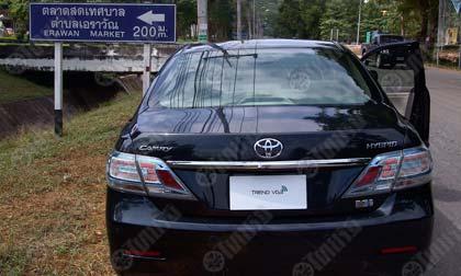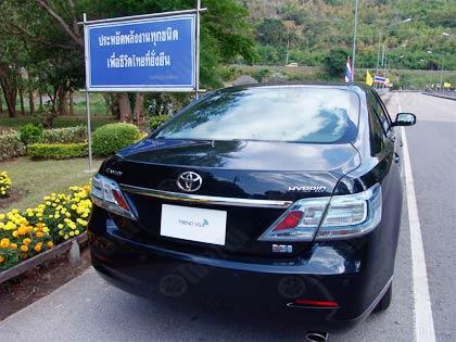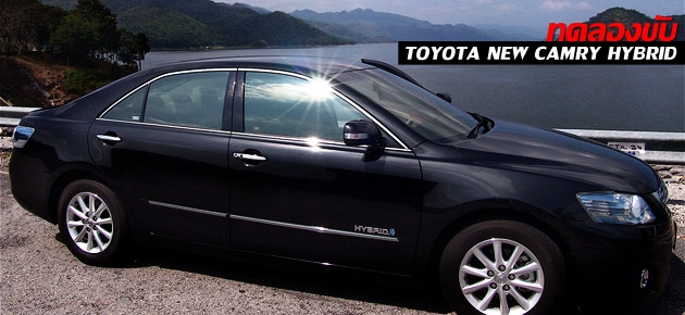 ผม รับรถจากเจ้าหน้าที่ของบริษัทโตโยต้า มอเตอร์ ประเทศไทยในช่วงสายของวันพฤหัสฯแล้ว ช่วงบ่ายจึงโหลดอุปกรณ์ IT พร้อมผู้โดยสารอีก 3 ท่านแบบเต็มพิกัด มุ่งหน้าไปยังจังหวัดกาญจนบุรีเพื่อไปงานสัมมนาประจำปีกับพนักงานของเวปข่าว ไทยรัฐโดยใช้เส้นทาง พุทธมณฑล-นครปฐม-ราชบุรี-กาญจนบุรี ตลอดเส้นทางสามารถใช้ความเร็วได้บ้างเนื่องจากปริมาณรถยนต์ในช่วงบ่าย 2 โมงยังคงไม่หนาแน่นมากนัก การขับขี่ควบคุมรถ New Camry Hybrid เป็นไปด้วยความสะดวกสบายของอุปกรณ์ที่ออกแบบมาเพื่อรองรับและคอยช่วยเหลือใน ระหว่างการขับขี่เช่น ระบบแอร์ของเบาะคู่หน้าที่ให้ลมเย็นขึ้นมาตรงๆจากใต้เบาะ คันเร่งไฟฟ้า Drive-By Wire ออกแบบมาให้กดกันแบบนิ่มๆเบาๆตอบสนองได้เร็วแบบรถยนต์รุ่นใหม่ทั่วไปที่นิยม ใช้คันเร่งแบบนี้ การควบคุมรอบของเครื่องยนต์ใช้มอเตอร์เป็นตัวทำงาน โดยมอเตอร์จะขยับเปิดลิ้นปีกผีเสื้อเพื่อปรับการทำงานของเครื่องยนต์ตาม สัญญาณทีี่ได้รับจากเซนเซอร์ในบริเวณขาคันเร่งและเซนเซอร์ต่างๆภายใต้การ สั่งงานของสมองกลไฟฟ้า ECU บริเวณหน้าปัดของเจ้า Camry Hybrid จะคอยแจ้งเตือนถึงการใช้พลังงานซึ่งจะสลับกันไปตลอดทางทั้งเครื่องยนต์และ มอเตอร์ไฟฟ้า เช่น ในระหว่างการออกตัวด้วยการกดคันเร่งแบบเต็มๆจนจมมิด ระบบจะเปลี่ยนจากมอเตอร์มาเป็นเครื่องยนต์เต็มรูปแบบ จนกระทั่งถึงทางสี่แยกที่มีไฟจราจร เมื่อตัวรถจอดนิ่งสนิทดีแล้ว เครื่องยนต์จะดับลงทันทีด้วยระบบ Start-Stop ซึ่งเป็นระบบที่มีอยู่ในยานยนต์ยุคใหม่ๆที่นิยมในเรื่องของการประหยัด พลังงานและการลดการปล่อยมลภาวะ เนื่องจากเป็นรถซีดานขนาดกลางที่เน้นความนิ่มนวลเป็นหลัก การทดสอบในครั้งนี้กับเจ้า New Camry Hybrid จึงเป็นการขับขี่แบบชิลล์ๆไปเรื่อยๆไม่รีบร้อนแบบค่อยเป็นค่อยไป เนื่องจากจำนวนของสัมภาระพวกกระเป๋าเดินทางและผู้โดยสารที่ไม่ใช่ตัวเล็กๆใน ตอนแรกคิดว่ามันน่าจะวิ่งไม่ออกแน่ๆเพราะบรรทุกมาเต็มคันรถทั้งคนทั้งของ แต่เมื่อลองเรียกความเร็วโดยการจมคันเร่งดู ตัวรถกลับพุ่งทะยานไปข้างหน้าโดยไร้สิ้นซึ่งความอืดอาดและออกจะกระชับฉับไว ทันใจดีแท้ ซึ่งเป็นผลงานจากการออกแบบให้ระบบเครื่องยนต์ทำงานร่วมกับมอเตอร์ไฟฟ้าได้ดี ในการเรียกกำลังแรงบิดจากเกียร์ลงสู่เพลาขับหน้าเมื่อต้องการใช้ความเร็ว