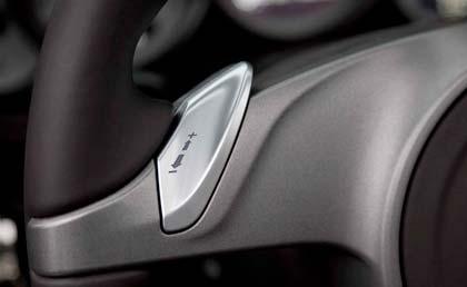สวิทช์แพดเดิลสำหรับการกดเพื่อปรับเปลี่ยนตำแหน่งเกียร์ขึ้น-ลง ก็ยังถูกออกแบบให้มีความแตกต่างกันออกไป วิศวกรของ Porsche ทำการออกแบบตัวสวิทช์ให้ถูกต้องตามหลักสรีระศาสตร์ โดยดีไซน์ให้ผู้ขับขี่สามารถใช้มือเพียงข้างเดียวทำการเปลี่ยนเกียร์ขึ้น-ลงด้วยความสะดวก จากการกดที่บริเวณด้านหน้าสำหรับการชิฟเกียร์ขึ้น ส่วนการชิฟเกียร์ลงต่ำก็สามารถกดบริเวณสวิทช์ด้านหลังที่อยู่ตรงกันข้าม เพื่อเพิ่มเติมความสามารถในการควบคุมพวงมาลัย ในขณะที่ใช้ความเร็วเพื่อทำให้การควบคุมตัวรถกับการเปลี่ยนตำแหน่งเกียร์ประสานเป็นหนึ่งเดียว เกียร์ PDK 7 สปีดมีทั้งสมรรถนะและความรวดเร็วในการเปลี่ยนตำแหน่งเกียร์ขึ้น-ลง เพื่อให้เข้ากับรูปแบบของการขับขี่บนรถสปอร์ต แถมยังมีอัตราความประหยัดเชื้อเพลิงที่เพิ่มขึ้น จากการทำงานของสมองกลไฟฟ้าที่จะใช้เวลาในการตัดต่อรวดเร็วและต่อเนื่อง อีกทั้งยังช่วยในเรื่องของการปล่อยมลภาวะลดลง และนี่คือนวัตกรรมของ Porsche ที่เข้ามาช่วยสร้างมาตรฐานการขับขี่รถซุปเปอร์คาร์ในยุคใหม่ ที่เต็มเปี่ยมไปด้วยเทคโนโลยีและประสิทธิภาพของระบบส่งกำลัง.