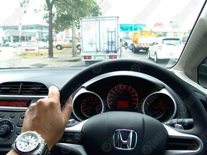 หลังจากปล่อยรถ ผมกับคุณอมร วรมาลี รอง บก. ของบางกอกทูเดย์ และผู้จัดการสนามแข่งรถ Bonanza International Speedway ซึ่งวันนี้ได้ร่วมขับรถคันเดียวกันโดยใช้รถ Jazz รุ่น SV สีเงินอลาบาสเตอร์ (เมทัลลิก) ไม้แรกเป็นหน้าที่ของคุณอมรในการขับทดสอบที่สบายๆไม่รีบร้อน ภารกิจแรกที่ Index Living Mall เป็นการหาซื้อของที่ต้องใช้ความรวดเร็วและความถูกต้อง หลังจากนั้น ขบวนรถทดสอบทั้งหมดก็มุ่งหน้าไปยังถนนบางนา-ตราด กม. 10 เลี้ยวซ้ายเข้าถนนกิ่งแก้วเพื่อไปยัง Bludeck Sport Club ทำภารกิจที่สองในการหาของชิ้นโตๆแล้วใส่ลงไปยังท้ายรถเพื่อถ่ายรูปและแสดงให้เห็นถึงความจุของด้านท้ายบริเวณที่ขนสัมภาระ รวมถึงร่วมรับประทานอาหารเที่ยงที่ Mission 2 Sport And Lunch
