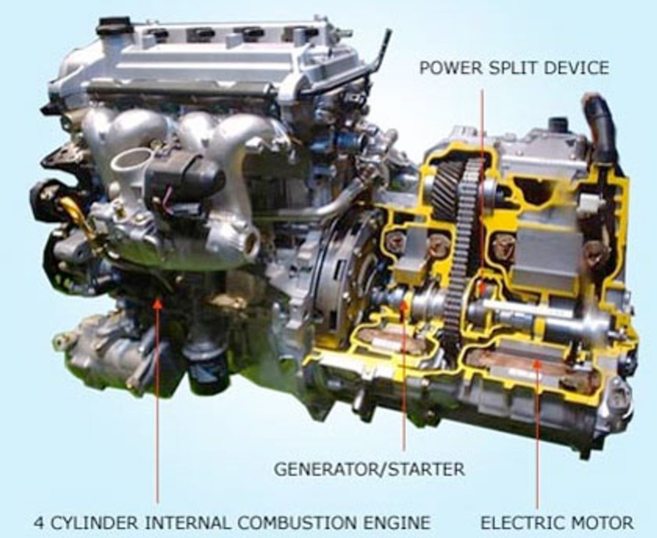เครื่องยนต์เบนซิน 1.8 ลิตร รหัส 2NZ-FXE Atkinson Cycle เป็นหัวใจหลักของการขับเคลื่อนและการหมุนเจนเนอร์เรเตอร์สำหรับผลิตกระแสไฟ เพื่อประจุเข้าสู่แบตเตอร์รีเพื่อใช้หล่อเลี้ยงมอเตอร์ไฟฟ้าที่เป็นต้นกำลัง เสริม มอเตอร์จะเปลี่ยนกระแสไฟฟ้าจากแบตเตอร์รีให้แปรเปลี่ยนมาเป็นพลังงานกล ในรูปของแรงบิดเพื่อช่วยเครื่องยนต์ทำการขับเคลื่อนตัวรถในบางสถานการณ์ เช่น ในขณะที่กำลังออกตัวด้วยรอบต่ำ หรือเมื่อผู้ขับต้องการเร่งแซง ทำหน้าที่เป็นมอเตอร์สตาร์ทในขณะที่ทำการสตาร์ทเครื่องยนต์ด้วยสวิชท์สตาร์ท จุดเด่นของมอเตอร์ใน New Prius คือสามารถสร้างแรงบิดสูงสุดได้ตั้งแต่มันเริ่มหมุน ส่วนเจนเนอร์เรเตอร์ ทำหน้าที่แปรเปลี่ยนพลังงานกล จากการหมุนมาเป็นพลังงานไฟฟ้า เพื่อทำการประจุกระแสไฟเข้าสู่ตัวแบตเตอร์รี หรือส่งกระแสไฟตรงๆไปยังมอเตอร์ไฟฟ้าก็ได้