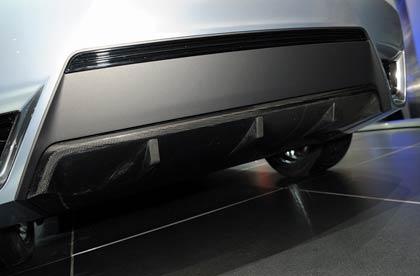 โป่งซุ้มล้อทั้งสี่ของแนวข้างบังโคลน ดูอวบอ้วนขึ้นผิดหูผิดตาเพื่อเอาใจพวกนิยมล้อโตๆ ในเมื่อเจ้าของรถยุคใหม่มีความชื่นชอบในการนำรถยนต์ของตนไปใส่ล้อกับยางหน้ากว้างไซส์น้องๆ ยักษ์ ที่ขนาด 19-20 นิ้ว วิศวกรผู้ออกแบบจึงทำการนำเสนอโป่งแบบอวบๆ รอบคันโดยดีไซน์ให้เข้ากันกับล้ออัลลอยขนาด 19 นิ้วของตัวรถต้นแบบ แนวด้านข้างของตัวถังที่ไร้สิ้นซึ่งวัสดุกันกระแทกใดๆ ทั้งปวง เช่น ขอบคิ้วประตูกันกระแทก ส่งถ่ายความลื่นไหลของมวลอากาศต่อเนื่องไปถึงบริเวณส่วนท้าย บั้นท้ายของมันอาจดูขัดหูขัดตาไปบ้างจากตัวรถต้นแบบ และน่าจะถูกขัดเกลาให้ลงตัวมากกว่านี้สำหรับคันที่จะผลิตออกขายจริงในช่วงปลายปี