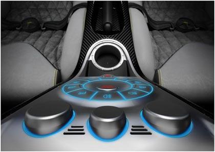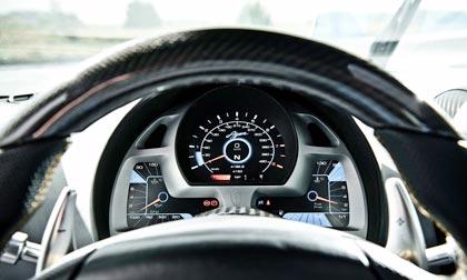 มาตรวัดทำออกมาคล้ายกับแผงควบคุมของ อากาศยาน มีทุกอย่างอยู่ภายในให้อ่านค่าเช่น เข็มวัดความเร็วมีตัวเลขให้มาถึง 400 กิโลเมตรต่อชั่วโมง มาตรวัดรอบกับเข็มวัดเชื้อเพลิงกับแรงดันน้ำมันหล่อลื่นและเข็มวัดอุณหภูมิ เครื่องยนต์สีแดงอยู่บนจอแสดงผลสีฟ้าพื้นดำ วงพวงมาลัยสามก้านหุ้มหนังทำจากคาร์บอนของ Koenigsegg Agera ดูโบราณและไม่ค่อยเหมาะกับรูปแบบอวกาศของห้องโดยสาร แป้นเปลี่ยนตำแหน่งเกียร์ทำจากอลูมิเนียมอยู่ด้านหลัง จอแสดงผลมัลติฟังก์ชั่น 8 นิ้วที่มีทั้งระบบให้ความบันเทิง ระบบนำร่องดาวเทียม นาฬิกาจับเวลาต่อรอบ ตัวบอกระดับกำลังรถ เข็มทิศ จอแสดงผลของแรง G โหมดการปรับตั้งค่าต่างๆของตัวรถรวมอยู่ภายในผ่านการควบคุมด้วยสวิชท์สั่ง งานทรงกลม แผงกลางคอนโซลก็ยังโชว์เนื้อลายคาร์บอน ทุกสิ่งทุกอย่างบนรถคันนี้บ่งบอกตัวตนของมันแค่สองอย่างคือความแรงและแพง เท่านั้น