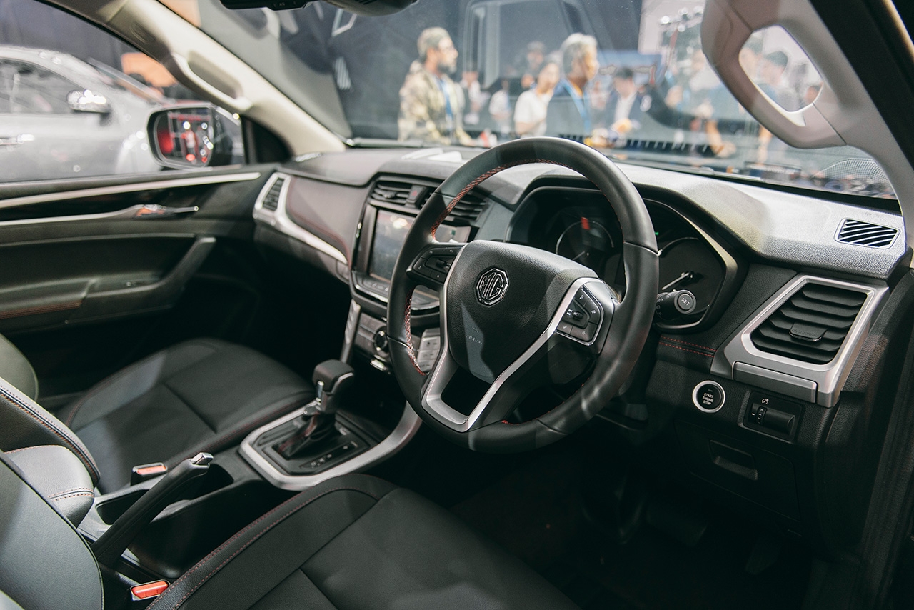 สำหรับภายในห้องโดยสารนั้น MG เน้นความสะดวกสบายและเพิ่มเติมเทคโนโลยีที่ทันสมัยอีกหลายรายการ ไม่ว่าจะเป็นห้องโดยสารที่เก็บเสียงดีเยี่ยมด้วยการออกแบบฉนวนกันเสียง 9 จุด พร้อมแผงหน้าปัดดีไซน์สปอร์ต นอกจากนี้ ยังมาพร้อมสิ่งอำนวยความสะดวกครบครัน อาทิ พวงมาลัยมัลติฟังก์ชั่น หน้าจอสีระบบสัมผัสขนาดใหญ่ 10 นิ้ว กุญแจระบบ Smart Key พร้อมปุ่ม Push Start และระบบปรับอากาศอัตโนมัติ โดยในรุ่น Double Cab ยังมาพร้อมเบาะปรับไฟฟ้าคู่หน้า เบาะหลังพับได้ และช่องปรับอากาศสำหรับผู้โดยสารด้านหลัง