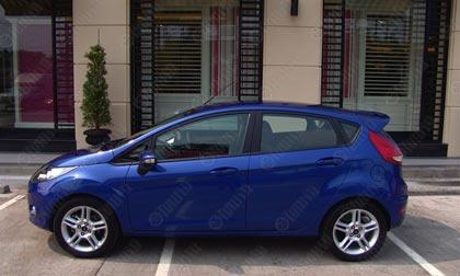 ด้านข้างที่เรียบลื่นของเจ้า Fiesta S Model เกิดจากการออกแบบรถยนต์ยุคใหม่ที่แทบทุกค่ายจะเอาคิ้วกันกระแทกออกไปเพื่อ ทำให้มุมมองด้านข้างของตัวรถมีความลื่นไหลมากขึ้น แนวเส้นนำสายตาคมๆลากจากบังโคลนหน้สไปจนถึงไฟท้าย ชายล่างของประตูด้านข้างทั้งสี่ยังถูกทำเป็นสันนูนขึ้นมาเล็กน้อย บานกระจกข้างมีขนาดไม่ใหญ่นักซึ่งเกิดจากการออกแบบแนวของหลังคาที่ค่อยๆลาด เอียงไปจนจรดเสาหลัง ส่วนของบั้นท้ายดีไซน์ได้โดนใจใครบางคนที่ชอบรถเล็กทรงท้ายตัด 5ประตู ไฟท้ายใช้หลอดไฟแบบผสมซึ่งมีทั้งหลอด LED และ หลอดธรรมดา ออกแบบได้ดี กระจกบานหลังที่ติดกับฝาท้ายมีขนาดเล็กจนอาจทำให้ทัศนวิศัยหรือมุมมองด้าน หลังเมื่อมองผ่านกระจกมองหลังไม่กว้างเท่าที่ควร มุมของสปอยเลอร์หลังทั้งสองข้างยังติดแถบสะท้อนแสงมาให้เพื่อความสวยงาม ฝาท้ายเปิดอกในมุมสูงเพื่อความสะดวกในการขนสัมภาระแต่พื้นที่ของฝาท้ายหลัง เบาะโดยสารด้านหลังมีไม่มากนัก ต้องพับเบาะคู่หลังลงหากจะขนของชิ้นใหญ่ๆเช่นถุง Golf ภายในซุ้มล้อมีวงล้ออัลลอยลาย 5 ก้านคู่ขนาด 16 นิ้ว ใส่ยาง Continental tire - รุ่น Conti Premium Contrct 2 ไซล์ 195/50/r16 เป็นยางที่เหมาะสมกันดีกับขนาดและกำลังของตัวรถ