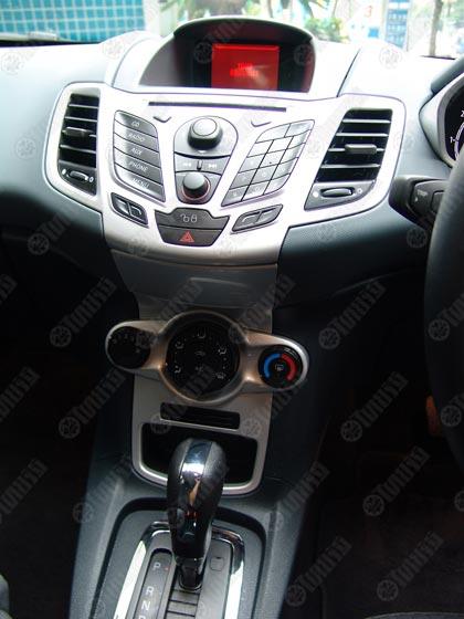 คอนโซล กลางออกแบบคล้ายกับปุ่มของโทรศัพท์มือถือเพื่อความง่ายในการใช้งาน ด้านบนของปุ่มสวิชต์คอนโทรล มีจอแสดงผล Multi Function Display สีส้ม คอยแจ้งเตือนโหมดการทำงานของ CD / วิทยุ AM-FM / การเชื่อมต่อโทรศัพท์แบบบูลทู้ต โดยใช้การสั่งผ่านทางเสียงของผู้ขับขี่หรือ Volce Control เป็นลูกเล่นล้ำอนาคตที่ Ford ติดมาให้เพื่อให้เจ้าของรถเอาไว้อวดเพื่อนๆ ช่องเชื่อมต่ออุปกรณ์เครื่องเล่นภายนอก USB ช่องเสียบชาร์จไฟ ที่วางแก้ว พื้นที่ของเบาะหลังมีพอแต่คนรูปร่างใหญ่โตคงอึดอัดไม่น้อยเนื่องจากขนาดของ ตัวรถที่เน้นความกระทัดรัดและความคล่องตัวในการใช้งาน ที่ออกแบบได้ไม่ดีนักคือสวิชต์ควบคุมกระจกไฟฟ้าทั้งสี่บานตรงแผงประตู อยู่ในตำแหน่งที่ใช้งานค่อนข้างลำบากไปสักนิด