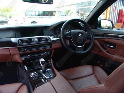 หน้าปัดเปลี่ยนแปลงไปเล็กน้อย มองครั้งเดียวก็รู้ทันทีว่านี่คือหน้าปัดของรถ BMW พวงมาลัยทรงสามก้านหุ้มหนังแท้คล้ายกับของเดิม มีสวิตช์ + - สำหรับเปลี่ยนตำแหน่งเกียร์และสวิตช์มัลติฟังก์ชั่นปรับชุดเครื่องเสียง ระบบควบคุมความเร็วอัตโนมัติและโทรศัพท์เคลื่อนที่ ไฟหรี่บริเวณมือจับประตูถูกเปลี่ยนสีให้สวยงามขึ้น ซึ่งกลายเป็นลูกเล่นชิ้นใหม่ของค่ายใบพัด คอนโซลของ Series 5 F10 จะเอียงเข้าหาตำแหน่งของผู้ขับขี่เล็กน้อย เนื่องจากผู้ทีี่่เลือกซื้อรถรุ่นนี้กว่า 90% มักจะขับรถด้วยตนเอง วิศวกรของ BMW จึงเน้นไปที่การใช้งานของอุปกรณ์ภายในทีี่ต้องสะดวกสบายและรวดเร็ว ส่งตรงไปยังผู้ขับขี่โดยตรง เบาะนั่งคู่หน้าคล้ายกับของรุ่นเดิมที่มีขนาดพอเหมาะนั่งสบายปรับด้วยมอเตอร์ไฟฟ้าพร้อมหน่วยความจำ ระบบสั่งการในโหมดต่างๆ ด้วยปุ่ม iDrive ถูุกปรับโปรแกรมใหม่ทั้งหมดเพื่อการใช้งานที่ง่ายขึ้นกว่า iDrive ของรุ่นแรกๆ มีโหมดให้เข้าไปเลือกใช้งานได้เพียบนับร้อยรายการ ทั้งการควมคุมปรับแต่งระบบต่างๆ ที่เอื้ออำนวยต่อการขับขี่ให้มีความสะดวกสบาย เพิ่มเติมสมรรถนะในการควบคุมและตรวจสอบความผิดพลาดของระบบต่างๆ อย่างครบครัน