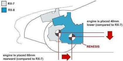 Mazda RX-8 โมเดล 2010 ใช้เครื่องยนต์โรตารี่ Renesis ที่มีขนาดเล็กกระทัดรัดและน้ำหนักเบากว่าเครื่องยนต์แบบปกติ การออกแบบผนังห้องเครื่องเพื่อให้เกิดความสมดุลในการกระจายน้ำหนักทำได้ง่ายกว่า งานวิศวกรรมเครื่องยนต์สูบหมุนแบบโรเตอร์ที่คิดค้นขึ้นโดยช่างชาวเยอรมันถูกสานต่อบนสายพันธุ์รถสปอร์ตของ Mazda มานานกว่า 30 ปีแล้ว ลูกสูบแบบสามเหลี่ยมในเครื่องโรตารี่ของ Mazda สามารถสร้างแรงม้าได้มากกว่าเมื่อเทียบกับปริมาตรความจุที่เท่ากันของเครื่องยนต์แบบสูบชัก ปริมาณของชิ้นส่วนต่างๆ ที่เคลื่อนไหวอยู่ในเครื่องโรตารี่น้อยกว่าเกือบเท่าตัว ส่งผลให้เครื่องยนต์ชนิดนี้มีน้ำหนักเบาและมีจุดศูนย์ถ่วงต่ำมาก การส่งกำลังจากลูกสูบไปยังเพลาเยื้องศูนย์จะอยู่บนแกนเดียวกัน ต่อเนื่องไปถึงเพลาส่งกำลังและเพลากลาง เครื่องยนต์โรตารี่จึงมีการสูญเสียกำลังระหว่างจุดเชื่อมถ่ายน้อยกว่าเครื่องยนต์สูบชักแบบเห็นๆ