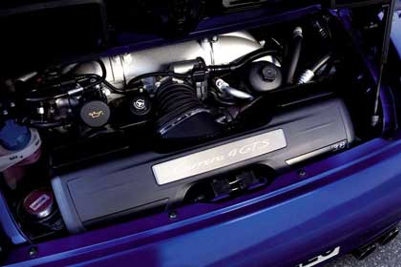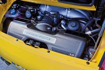 เครื่องยนต์ในรุ่น 911 คาร์เรร่า 4 จีทีเอส (911 Carrera 4 GTS) ผลิตจากพื้นฐานของเครื่องยนต์ที่ใช้ในรุ่นคาร์เรร่า เอส (Carrera S) ขนาด 3.8 ลิตร 6 สูบ แบบ Boxer กระบอกสูบนอนชักข้าง บล็อกเครื่องเป็นอะลูมินัมอัลลอย ทำการปรับปรุงท่อไอดีใหม่ทั้งหมดทำให้สามารถรีดพลกำลังของเครื่องยนต์เพิ่มขึ้นถึง 23 แรงม้า หรือเพิ่มขึ้นอีก 17 กิโลวัตต์ ทำให้สปอร์ตคาร์รุ่นนี้สามารถปลดปล่อยแรงม้าออกมาได้สูงสุดถึง 408 แรงม้า (300 กิโลวัตต์) ที่ 7,300 รอบต่อนาที โดยไม่มีระบบอัดอากาศแบบใดมาคอยช่วยเหลือ ระบบพิเศษที่วิศวกรของปอร์เช่เพิ่มเติมเข้าไปนั้น ไม่เพียงแต่ช่วยเพิ่มขุมพลังแต่ยังส่งผลต่อความยืดหยุ่นของเครื่องยนต์ที่สามารถเรียกแรงบิดได้ในทุกย่านของรอบเครื่องยนต์