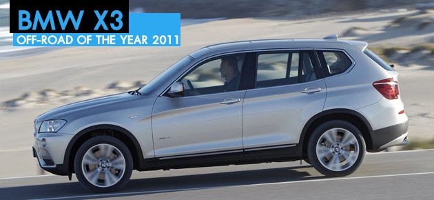 สำหรับในปี 2011 นี้ BMWX3 ใหม่ ที่เพิ่งออกสู่ตลาดในไตรมาสที่ 4 ของปีกลาย สามารถชนะใจผู้บริโภคคว้ารางวัล “Off-Roader of the Year” มาครอง โดยทิ้งคู่แข่งอย่างขาดลอย รถ BMW X3 ใหม่ ถูกเน้นให้มีประสิทธิภาพมากขึ้นกว่าเวอร์ชั่นแรกสุดในด้านความปราดเปรียวคล่องตัวและความสะดวกสบาย มิติตัวถังที่มีความยาวเพิ่มขึ้นถึง 83 มิลลิเมตรและความกว้างเพิ่มขึ้นอีก 28 มิลลิเมตรจากรุ่นก่อนหน้าทำให้มันมีขนาดที่ใกล้เคียงกับรุ่น X5 จนแทบแยกไม่ออก นอกจากระบบขับเคลื่อนสี่ล้ออัจฉริยะ xDrive ที่ได้รับการปรับปรุงให้มีความก้าวหน้ามากขึ้นแล้ว BMW X3 ใหม่ยังมีอ็อปชั่นพิเศษให้เลือก นั่นก็คือระบบช่วงล่างแบบ VDC - Variable Damper Control และระบบ DDC DriveDynamic Control ที่ช่วยเพิ่มศักยภาพของระบบแชสซีให้มีความหยืดหยุ่นต่อการใช้งานหลากหลายรูปแบบ สามารถรองรับการวิ่งผ่านทุกสภาพถนนได้ดี โดยเฉพาะทางแย่ๆ ที่รถเก๋งทั่วไปไม่สามารถวิ่งได้
