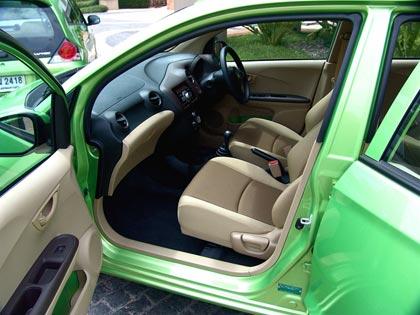 โครงสร้างตัวถังของ Brio ที่มีขนาดกะทัดรัดช่วยให้การขับขี่ในเมืองเต็มไปด้วยความคล่องตัว กระจกบานหน้าขนาดใหญ่ยังช่วยเพิ่มมุมมองที่กว้างไกล เสาหน้าออกแบบให้ลดการบดบังทัศนวิสัย พื้นที่กระจกบานประตูลาดเอียงต่ำลงไปที่ด้านหน้า กระจกมองข้างก็มีการจัดวางให้อยู่ในระดับที่ต่ำอีกเช่นกัน รวมถึงตำแหน่งที่สูงขึ้นเล็กน้อยของเบาะคู่หน้า (เป็นแบบปรับระดับความสูงไม่ได้ แต่ปรับเดินหน้า-ถอยหลังและปรับเอนได้)ส่งผลไปถึงมุมมองด้านหน้าและด้านข้าง ที่ชัดเจน จนสามารถเห็นได้ทั่วทั้งคัน การเลี้ยวกลับรถในที่คับแคบทำได้อย่างสะดวก จากส่วนท้ายที่สั้น กับกระจกบานหลังที่ออกแบบให้เปิดได้เพื่อการขนสัมภาระ เบาะหลังที่สามารถพับเอนราบได้ยังช่วยเพิ่มเติมพื้นที่ในการขนของ เช่น กระเป๋าเดินทางขนาดใหญ่ หรือถุง Golf ภายในห้องโดยสารยังมีพื้นที่วางขาที่มากเป็นพิเศษสำหรับผู้โดยสารตอนหน้า พร้อมด้วยช่องเก็บของและช่องวางแก้ว รวมถึงพื้นที่สำหรับวางโทรศัพท์มือถือ หรือของใช้ขนาดเล็กอื่นๆ ส่วนท้ายของคอนโซลกลางยังใส่ขวดน้ำขนาดความจุ 1 ลิตรได้อีกด้วย