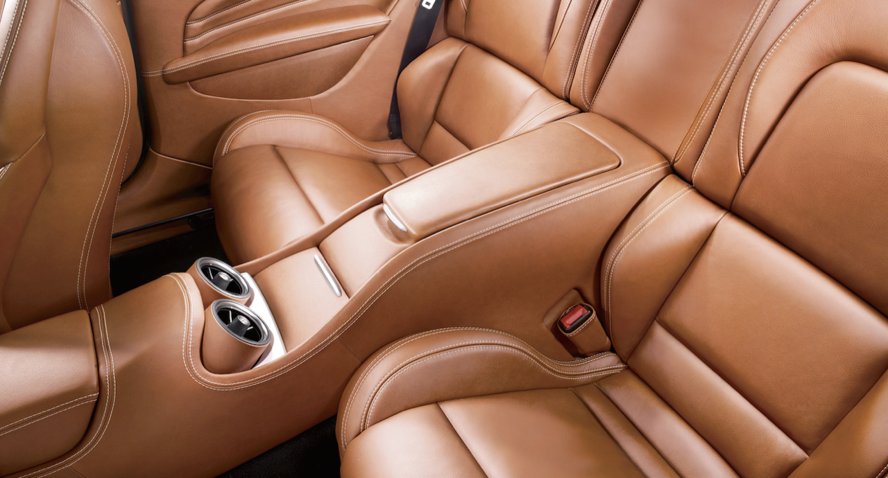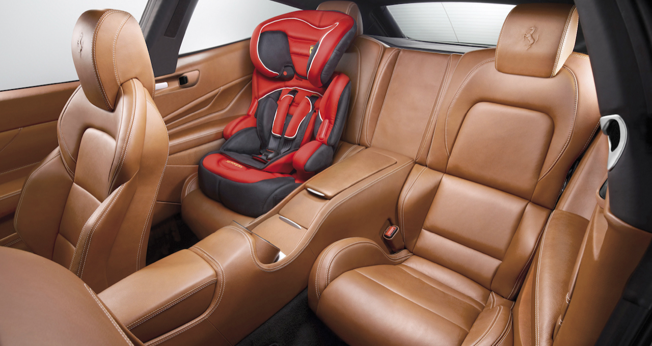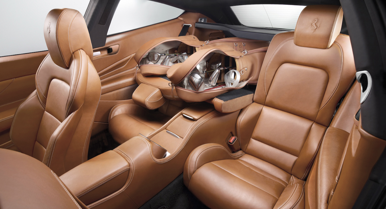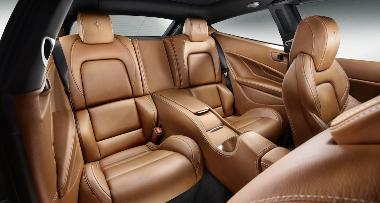 พื้นที่เบาะหลังมีมากพอสำหรับการนั่ง โดยตัวเบาะถูกแยกส่วนออกจากกันตามรูปแบบของรถ GT ให้ความสะดวกสบายเมื่อต้องนั่งเดินทางไกล ส่วนหลังที่คับแคบแบบรถแฮตช์แบ็กทั่วไป ถูกขยายให้ใหญ่ขึ้นใน Ferrari FF เพื่อให้สมกับตัวรถรุ่นเรือธงของ Ferrari พื้นที่ด้านหลังถูกขยายเพิ่มอีก 40 มิลลิเมตร พร้อมระบบให้ความบันเทิงสำหรับผู้โดยสารตอนหลังเมื่อต้องเดินทางไกล การจัดวางอุปกรณ์ การเลือกใช้วัสดุตกแต่งภายใน กลิ่นและสี รวมถึงมุมมองทั้งหมดภายในห้องโดยสารยังคงสื่อให้เห็นถึงผลิตภัณฑ์ระดับสูงของค่ายม้าลำพองได้เป็นอย่างดี แต่อาจดูซ้ำและเหมือนกันกับรูปแบบในการจัดวางบน Ferrari ยุคใหม่แทบทุกรุ่น งานประกอบที่ประณีต โดยมุ่งเน้นไปที่ความหรูหรา ประโยชน์ใช้สอย และความงดงามลงตัว