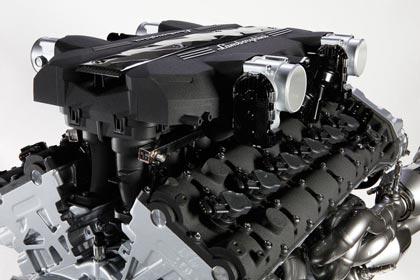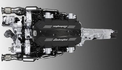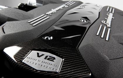 เครื่องยนต์ V12 6.5 ลิตร วางตำแหน่งเอาไว้ที่กลางลำตัว เป็นเครื่องยนต์ที่ได้รับการพัตนาโดยนำข้อดีของเครื่องรุ่นเก่ามาปรับปรุงให้ดีขึ้น ทั้งในย่านของกำลังแรงบิดกับขนาดที่กะทัดรัดมากขึ้น รวมถึงน้ำหนักของเครื่องรุ่นใหม่ตัวนี้ก็ยังลดลงถึงกว่า 18 กิโลกรัม เมื่อเปรียบเทียบกับเครื่องยนต์ของ Murcielago กระบอกสูบทั้ง 12 ตัว ในเครื่องยนต์ของ Aventador วางทำมุม 60 องศา และวางอยู่ในตำแหน่งที่ต่ำกว่าเครื่องตัวเก่า 70 มิลลิเมตร เพื่อลดค่า CG-Center Of Gravity มีรอบการหมุนสูงสุดที่ 8,250 รอบต่อนาที ให้กำลังสูงสุดที่ 690 แรงม้า และมีแรงบิดสูงกว่าเครื่องตัวเก่าของ Murcielago อยู่ถึง 32 ปอนด์-ฟุต (509 ปอนด์-ฟุต) อัตราเร่ง 0-100 ใน 2.9 วินาที ทำงานโดยส่งถ่ายแรงบิดทั้งหมดไปยังชุดเกียร์ 7 สปีดรุ่นใหม่ บนการกระดิกแป้นแพดเดิลหลังพวงมาลัย การไม่เลือกใช้เกียร์แบบทวินคลัตช์ ช่วยให้น้ำหนักและขนาดของเกียร์ทั้งลูกลด ลงรวมถึงตำแหน่งของการวางที่เกียร์ทั้งลูกจะอยู่ด้านหน้าเครื่องยนต์ ทำให้ไม่สามารถเลือกใช้เกียร์แบบคลัตช์คู่ได้ แต่ระบบ ISR หรือ ISR-Indepdent Shiffing Rod ได้เข้ามาทดแทนสมรรถนะของเกียร์ทวินคลัตช์อย่างลงตัวและสมบูรณ์แบบ การใช้ Shift Rod คนละตัวสลับการทำงานในเกียร์ถัดไป ทำให้เกียร์สามารถเริ่มต้นการทำงานในขณะที่เกียร์ก่อนหน้ากำลังจากออกมาจากชุดเฟือง ลดเวลาการเปลี่ยนตำแหน่งเกียร์ลงอีก 50 ms เร็วกว่าระบบ E-Gear ของรถ Gallardo ประมาณ 40%