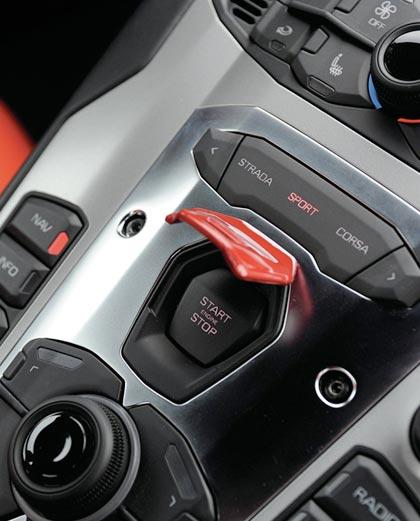 Cockpit ของ LP 700/4 กลายเป็นอีกหนึ่งในนวัตกรรมล้ำอนาคต บนงานประกอบในระดับสูงสุดของค่าย Audi ที่เข้ามาควบคุมกิจการของ Lamborghini เมื่อสิบกว่าปีก่อน อุปกรณ์ที่โดดเด่นมากที่สุดภายในห้องโดยสารของเจ้าวัวเปลี่ยว Aventador คือหน้าปัดมาตรวัดแบบ Virtual Instrument คล้ายกับหน้าจอควบคุมของยานอวกาศ จอทรงกลมขนาดใหญ่สามารถเลือกแสดงภาพเป็นมาตรวัดรอบหรือมาตรวัดความเร็ว พร้อมไฟแจ้งเตือนสารพัดสี งานดีไซน์กรอบหน้าปัดทรงกระบอกที่ห่อหุ้มสอดรับกับชุดคอนโซลกับวงพวงมาลัยแบบ 3 ก้าน เบาะปรับระดับด้วยไฟฟ้าช่วยอำนวยความสะดวกในสรีระของผู้ขับ ตำแหน่งของก้านไฟเลี้ยวยังคงอยู่ที่เดิมเหมือน Murcielago เช่นเดียวกับก้านควบคุมการทำงานของใบปัดน้ำฝน หลังวงพวงมาลัยยังมีแป้นแพดเดิลเพื่อปรับเปลี่ยนอัตราทดเกียร์บนชุดเกียร์กึ่งอัตโนมัติ ISR-Indepdent Shiffing Rod ชุดปุ่มเกียร์ถอยกับสวิตช์ปรับโหมดแมลนวล-ออโต้ถูกวางตำแหน่งอยู่กึ่งกลาง คอนโซลซุ้มเกียร์ (แต่ไม่มีแท่งเกียร์เหมือนกับ Murcielago) ตามด้วยฝาปิดโลหะสีแดงสำหรับสวิตช์สตาร์ทเครื่องยนต์