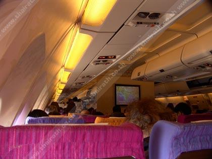 ที่นั่งสำหรับผู้โดยสารชั้นประหยัด จำนวน 325 ที่นั่ง มีความกว้าง 18 นิ้ว มีระยะห่างระหว่างแถว 34 นิ้ว พร้อมติดตั้งจอ TV ส่วนตัวขนาด 9 นิ้วในทุกตำแหน่ง