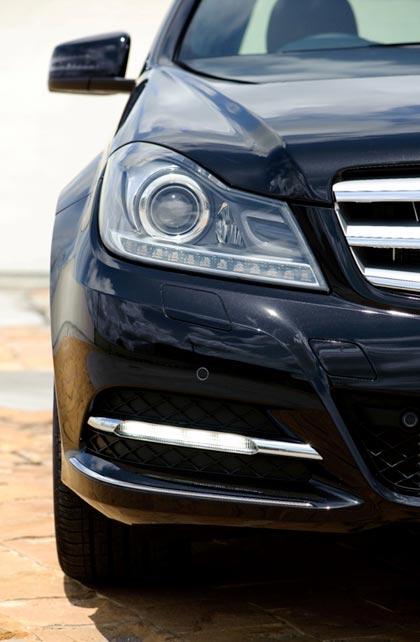 ไฟคู่หน้าใหม่แบบไบซีนอน ถูกออกแบบให้ดูดุดันแต่มีชีวิตชีวา เพื่อให้กลมกลืนกับส่วนหน้าของรถที่เน้นทรง V-Shape ซึ่งทำงานควบคู่กับระบบส่องสว่างอัจฉริยะ (Intelligent Light System - ILS) ผู้ขับสามารถปรับระดับการส่องสว่างโดยอัตโนมัติตามสภาพเส้นทาง พร้อมด้วยไฟ daytime แบบ LED สำหรับการขับขี่ในเวลากลางวันซึ่งติดตั้งอยู่ในกันชนด้านหน้า รวมทั้งไฟหน้าแบบฮาโลเจน ที่ประกอบไปด้วยไฟต่ำและไฟสูง รวมทั้งชุดไฟท้ายดีไซน์ใหม่แบบ LED ที่ช่วยเพิ่มทัศนวิสัยการขับขี่ในยามค่ำคืนให้ดียิ่งขึ้น เอกลักษณ์อย่างหนึ่งของ Mercedes Benz New C-Class Minor Change 2012 คือ ระบบอากาศพลศาสตร์หรือแอร์โรไดนามิกส์ ที่เป็นเลิศด้วยค่าสัมประสิทธิ์แรงเสียดทานอากาศต่ำเพียงแค่ 0.26 หรือเทียบเท่ากับมีค่าทางอากาศพลศาสตร์ที่ดีที่สุดในรถสปอร์ตซีดานระดับเดียวกัน