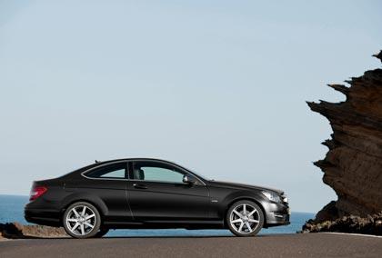 หากมองจากด้านข้าง Coup Edition 1 โฉมใหม่คันนี้จะเห็นถึงความกะทัดรัดของสัดส่วน ด้วยโครงร่างที่ต่ำ โค้งมน บวกกับช่วงซุ้มล้อหน้าที่เน้นการสื่อให้เห็นถึงพลังในการขับเคลื่อน เสาหลังเรียวบาง และใช้การออกแบบรูปทรงที่คลาสสิคผสมผสานไปบนโครงตัวถัง โดยมีรูปแบบสปอร์ตของรถคูเป้ขนานแท้ ได้แก่ ช่วงโอเวอร์แฮงที่สั้น กระโปรงหน้ายาว กระจกหน้าและหลังที่ลาดจากด้านหน้าของรถคูเป้ใหม่นี้ มีรูปลักษณ์ที่คล้ายกับรถยนต์ C-Class รุ่นล่าสุด แต่มันมีความเป็นตัวของตัวเองที่แตกต่างออกไปจากรุ่น 4 ประตู โดยยนตรกรรมโฉมใหม่นี้เป็น Edition 1 ซึ่งใช้การตกแต่งที่ส่อให้เห็นถึงความหรูหราสะดวกสบาย ภายนอกของตัวรถประกอบไปด้วย ชุดแต่งแอโรพาร์ทรอบคันจากแผนกมอเตอร์สปอร์ต AMG สำนักแต่งคู่บารมีของ Mercedes Benz กับชุดแต่ง AMG-Bodystyling (กันชนด้านหน้า-หลังและสเกิร์ตด้านข้าง) และล้ออัลลอยน้ำหนักเบาดีไซน์สปอร์ตจาก AMG ลาย 7 ก้าน ขนาด 18 นิ้ว ส่วนด้านหลังของ C-Class Coup สไตล์สปอร์ตนี้ ถูกออกแบบให้ลาดเอียงโค้งมนจรดกระจกด้านหลัง เพื่อรับกับความโค้งของ C-pillar นอกจากนี้ยังมีปลายท่อไอเสียแบบสแตนเลสปัดเงาที่เข้ากับรูปแบบของบั้นท้ายได้อย่างลงตัว