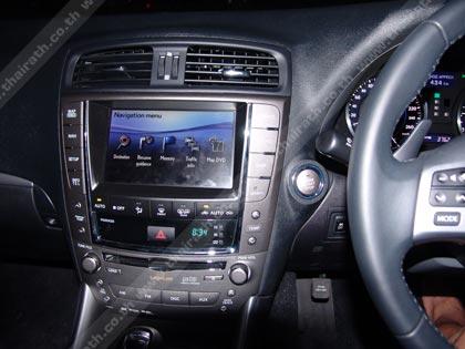 จอแสดงผลของ IS250 แบบระบบสัมผัส มีมุมมองที่ชัดเจนดีจากความคมชัด แต่ระบบนำทางและกำหนดพิกัดด้วยดาวเทียมยังคงใช้ภาษาอังกฤษที่ค่อนข้างใช้งานยากไปนิด ระบบสัมผัสที่หน้าจอก็มีความรวดเร็ว และแปรเปลี่ยนไปตามนิ้วมือในการสั่งงานได้ดั่งใจ มันออกแบบมาเพื่อใช้งานในชุด DVD/CD/MP3 รวมถึงยังเป็นมอนิเตอร์ของกล้องถอยหลัง ที่มีความคมชัดสูง แถมยังมีระนาบของเส้นสีเหลืองและแดง ซึ่งแสดงการแจ้งเตือนทั้งภาพและเสียง เมื่อคุณถอยเข้าใกล้วัตถุที่กีดขวาง ช่วยให้คุณสุภาพสตรีถอยได้อย่างมั่นใจ โดยไม่ไปล่อเอากระถางต้นไม้ ฟุตบาท หรือท้ายรถชาวบ้านแบบเมื่อก่อนอีกแล้ว จอแสองผลยังรวบรวมระบบโทรศัพท์ไร้สายแบบบูลธูท ข้อมูลการปรับตั้งและใช้งานในระบบต่างๆ ของตัวรถ บันทึกความจำบนเส้นทางต่างๆ ที่ต้องเดินทางผ่าน รวมถึงเปิดดูสภาพการจราจรก่อนที่จะเดินทางได้อีกด้วย มันฉลาดและมีความเหมาะสมกับการใช้งาน ในยุคที่เทคโนโลยีก้าวเข้ามาช่วยให้การขับขี่รถยนต์ มีความสะดวกสบายกว่าเมื่อก่อนชนิดเทียบกันไม่ติดเลยทีเดียว