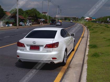 ผมอัดมันอีกครั้งเมื่อถนนเริ่มโล่ง และมันก็ตอบสนองเป็นอย่างดีทุกครั้งที่ต้องการเรียกแรงบิด โค้งยาวๆ บนวงแหวนตะวันออกมุ่งหน้าลำลูกกา ไม่ก่อให้เกิดปัญหาในการควบคุมแต่อย่างใดทั้งสิ้น รวมถึงสารพัดโค้งยูเทิร์นลงสะพาน ที่ผมเพียงแค่ลดตำแหน่งเกียร์และความเร็วของมันให้เหมาะสมก่อนเข้าสู่หัวโค้ง นอกจากประสิทธิภาพของช่วงล่างแล้ว ยาง Bridgestone Potenza Run Flat Tires รุ่น RE050 ขนาดต่างไซส์แบบหน้าเล็กหลังโต ที่พวกวัยรุ่นนิยมยังช่วยเติมเต็มสมรรถนะของการยึดเกาะในระดับที่ดี ถึงแม้มันจะมีแก้มยางที่แข็งมากกว่าปกติ เนื่องจากเป็นยางประเภท Run Flat และเมื่อใกล้หมดอายุมันจะส่งเสียงหอน เมื่อบดไปบนถนน แต่ยางทั้ง 4 เส้นของ IS250 คันทดสอบ ยังคงอยู่ในสภาพที่ใหม่เอี่ยมอ่อง จนผมแปลกใจเกิดความสงสัยว่าทีม PR ของ Lexus คงจะเปลี่ยนยางใหม่มาให้อย่างแน่นอน