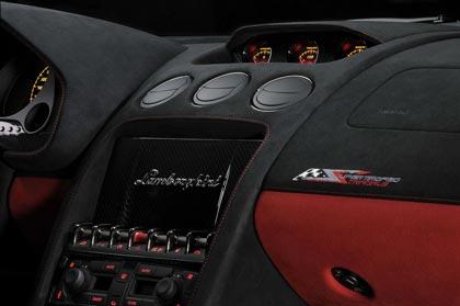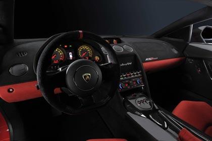 การตกแต่งภายในรูปแบบสปอร์ต การตกแต่งภายในของ Super Trofeo Strada นั้น มีการผสมผสานกันระหว่างสีดำและสีแดงได้อย่างลงตัว ภายในส่วนใหญ่ได้รับการตกแต่งให้ดูเป็นรถในสไตล์เรซซิ่งโดยวัสดุหลักที่ใช้ คือ อัลคันทาร่า มีการใช้สีแดง “รอสโซ มาร์ส” (Rosso Mars) บริเวณส่วนใต้แผงควบคุมแถบกลางของที่นั่งและพนัก รวมถึงส่วนที่เป็นคาร์บอนไฟเบอร์ด้วย นอกจากนั้นมีการใช้อัลคันทาร่าสีดำขอบแดงในส่วนอื่นๆของตัวรถ โดยพวงมาลัยหุ้มหนังกลับสีดำริมแดง รวมถึงบริเวณแผงประตู บริเวณคอนโซลส่วนกลาง และบริเวณที่นั่งทั้งหมดทำมาจากคาร์บอนไฟเบอร์ โดยทุกชิ้นส่วนผ่านกรรมวิธีการผลิตรถยนต์ที่ได้รับการยอมรับในระดับโลกของแลมบอร์ กินี นอกเหนือจากนี้ลูกค้าสามารถเลือกอุปกรณ์ที่ทำจากคาร์บอนไฟเบอร์ เช่น บริเวณเบรคมือ บริเวณคอนโซลส่วนกลาง บริเวณขอบล้อรถ การตกแต่งบริเวณรอบแผงอุปกรณ์ ที่จับประตู และที่จับสำหรับเปิดลิ้นชัก โดยสามารถแจ้งความจำนงเพื่อสั่งผลิตได้ตามต้องการ
